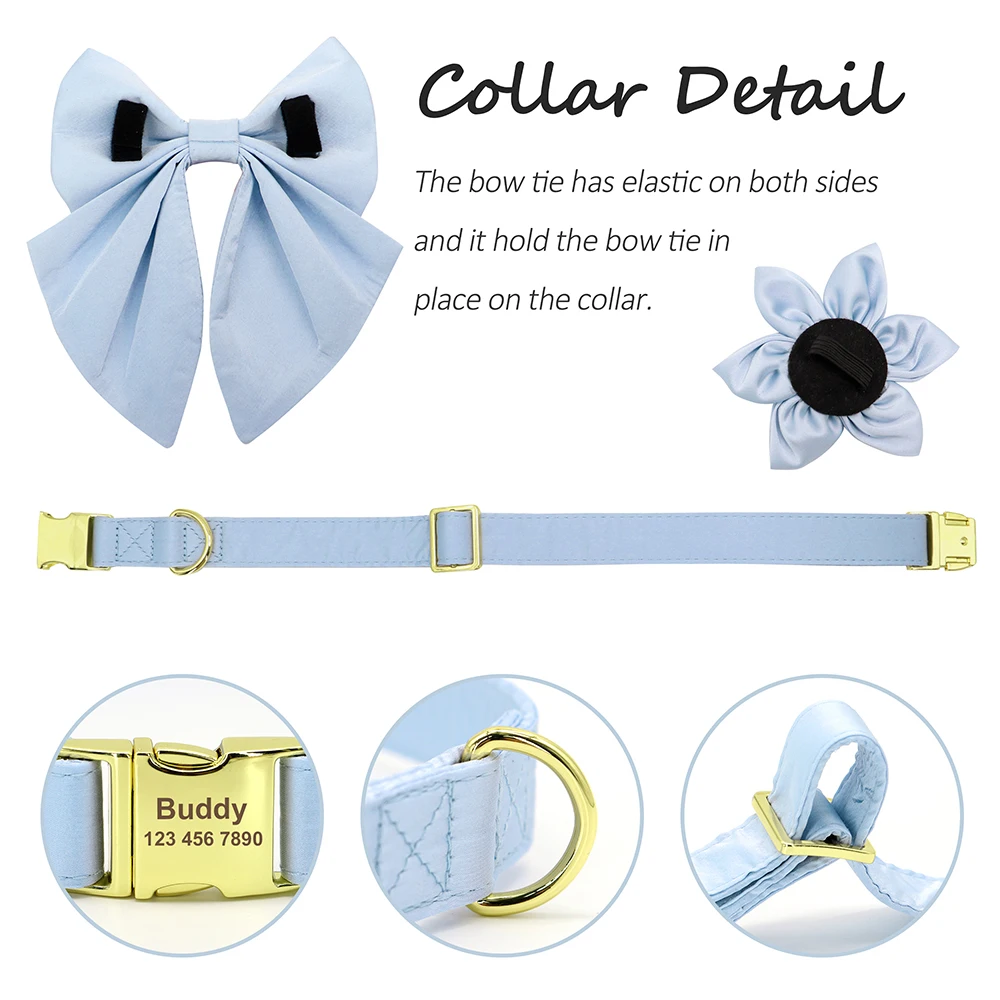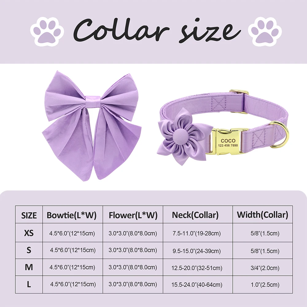 Collar de identificación personalizado para perro, collar con lazo bonito para mascota, collares con hebilla para perro y pajarita, accesorios de flores para perros pequeños y grandes