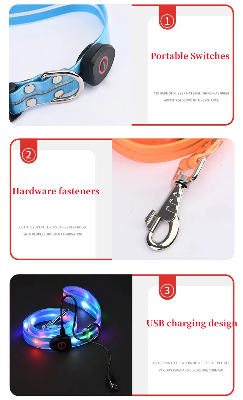 Material del producto: Correas de nailon + luces LED