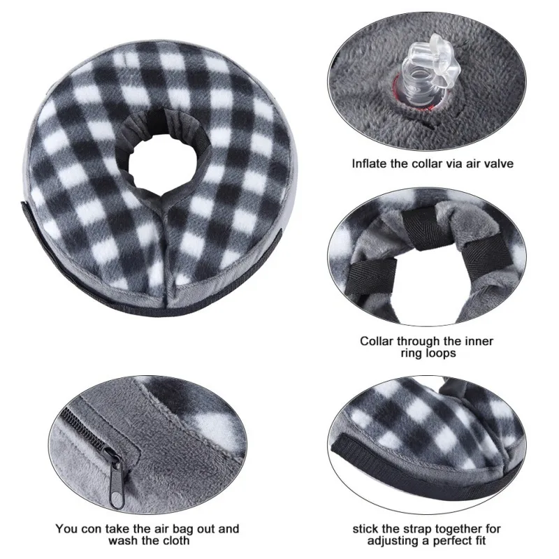 Collar inflable para recuperación de heridas, Collar isabelino antimordedura, círculo protector para perros pequeños y grandes