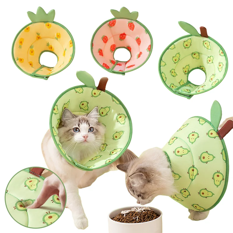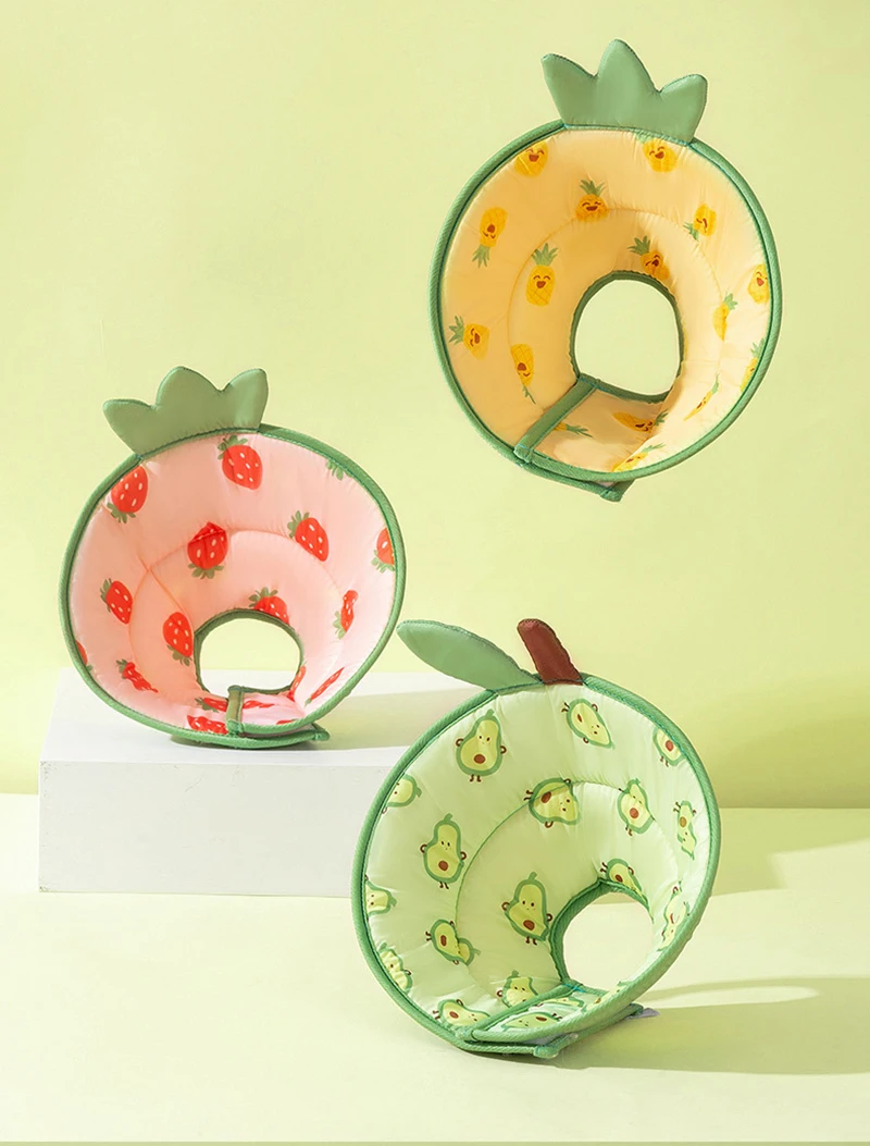 Collar isabelino ajustable para perros, forma de fruta de dibujos animados, perro y gato, Collar de recuperación acolchado suave, Anti lamer, protector para heridas