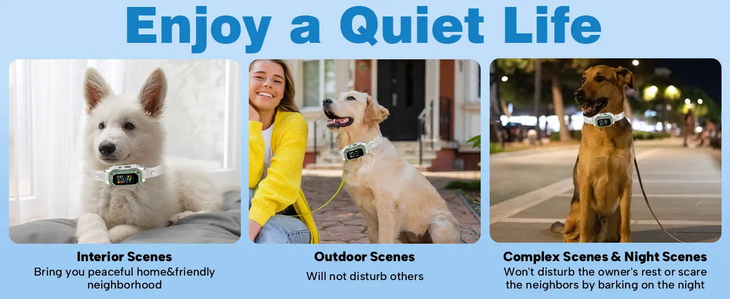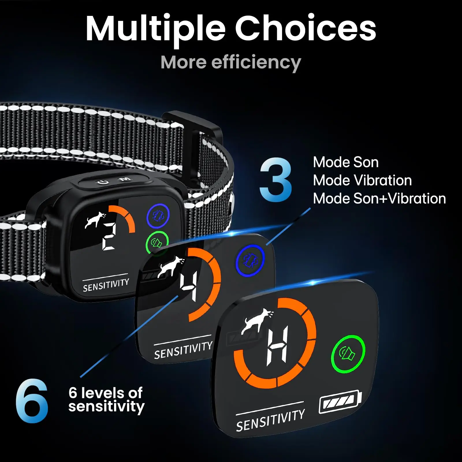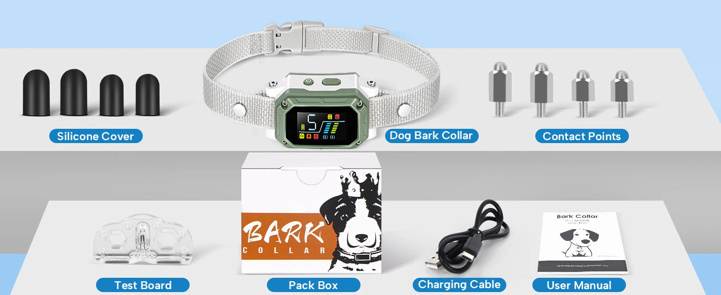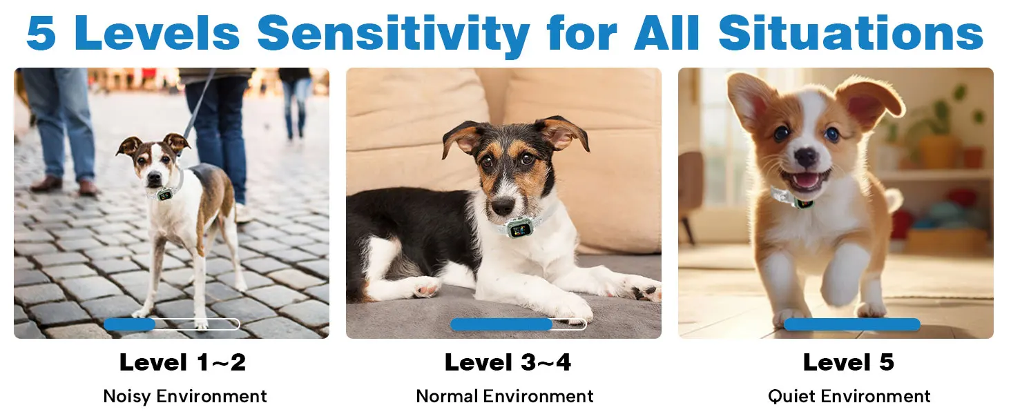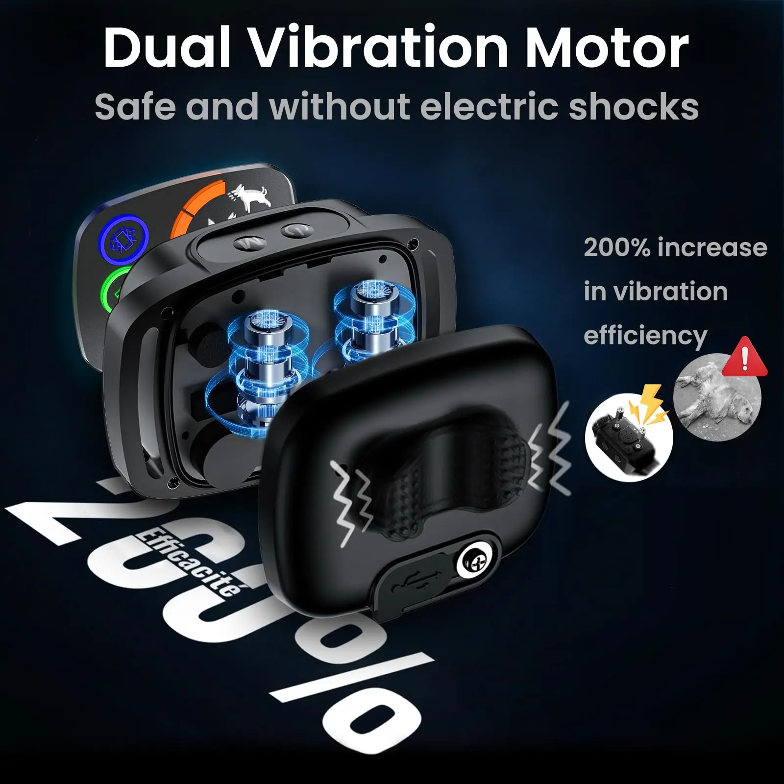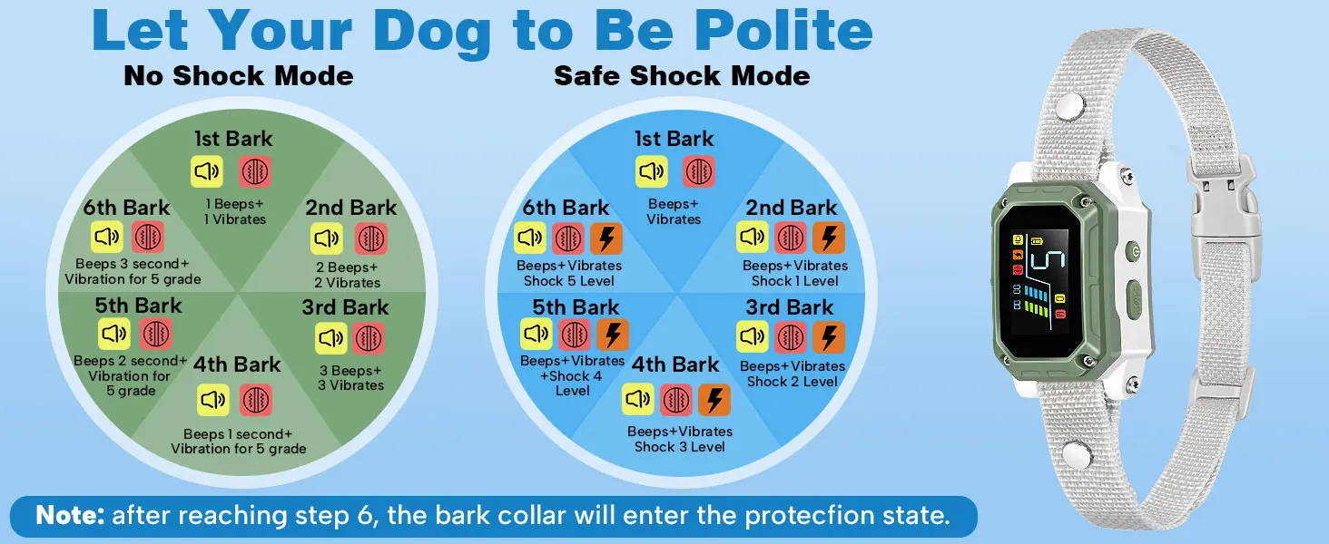 El collar antiladridos Smart AI ofrece dos modos para satisfacer sus necesidades de entrenamiento antiladridos.1.Antigolpes (Bip+Vibración) para perros sensibles; 2.Shock (Bip+Vibración+Shock) con una cubierta protectora para evitar daños en la piel por golpes.