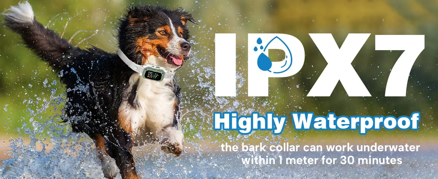 El collar de entrenamiento solo tarda 2 horas en cargarse y se puede usar de forma continua durante hasta 15-20 días. El collar de ladridos inteligente adopta un diseño impermeable IP67, que se puede usar incluso en días lluviosos/neves, o nadar.