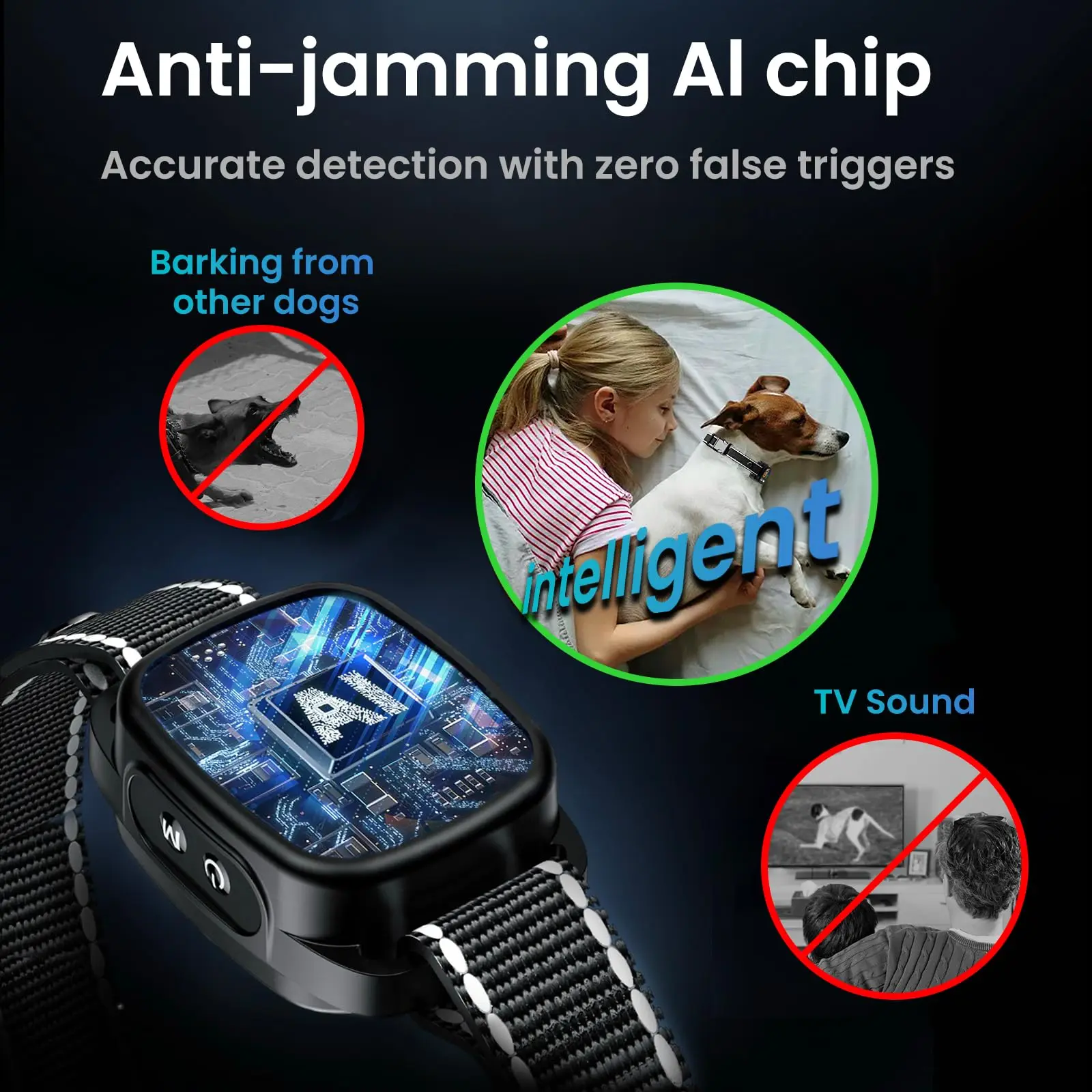 El collar antiladridos adopta tecnología avanzada de IA.Mediante análisis en tiempo real y reconoce la corteza del perro, el collar de corteza puede proporcionar una corrección y entrenamiento efectivos para resolver el hábito de los ladridos frecuentes.