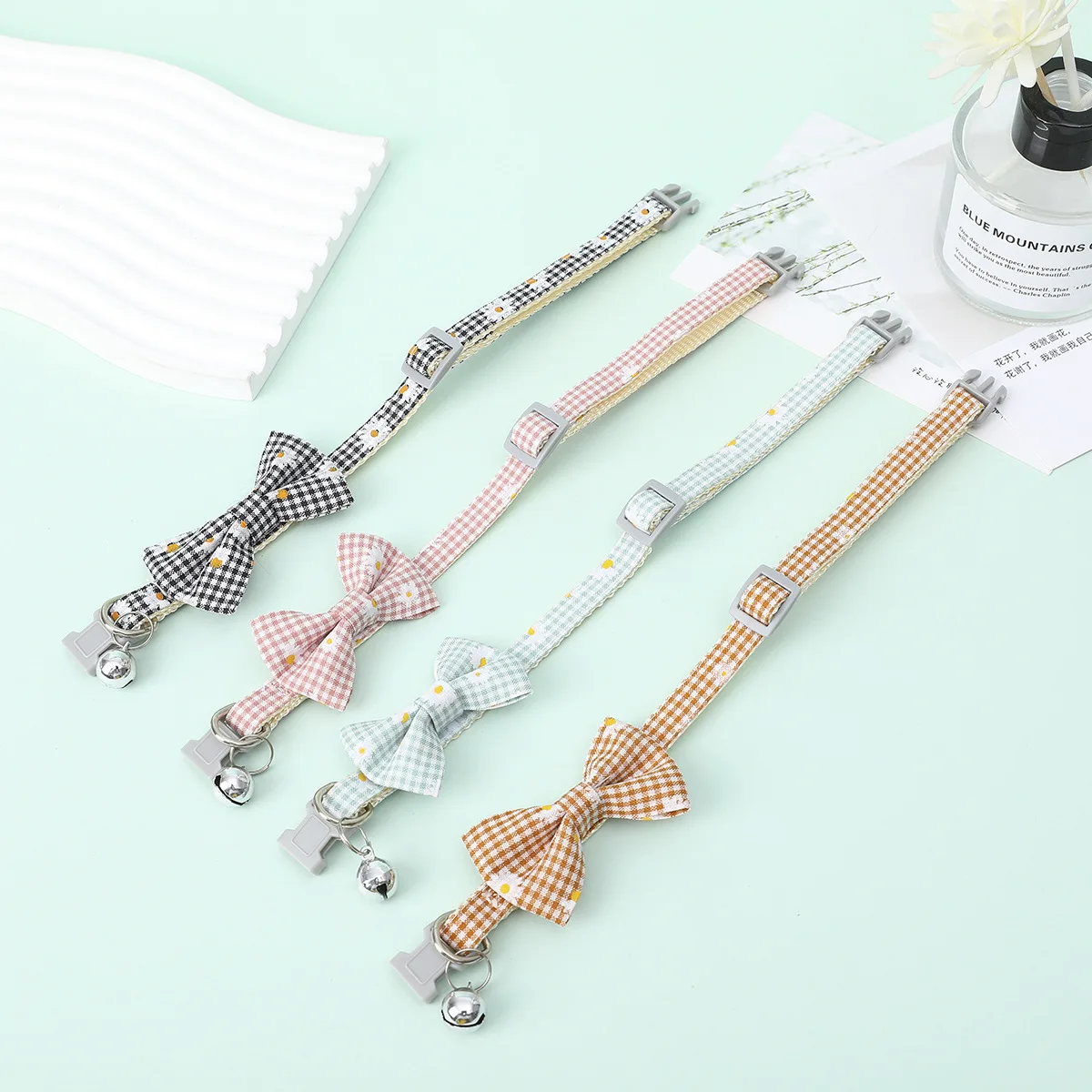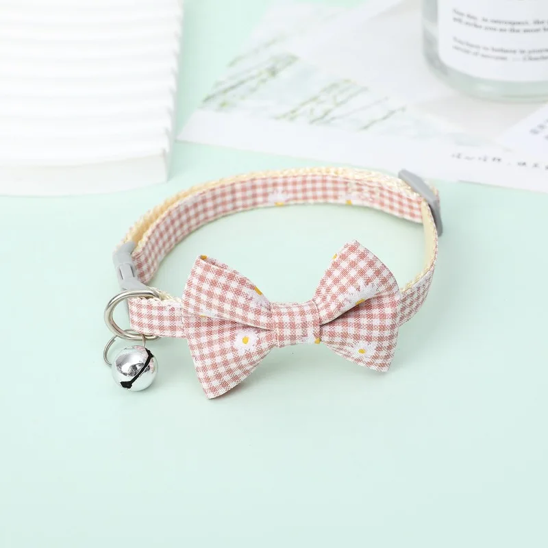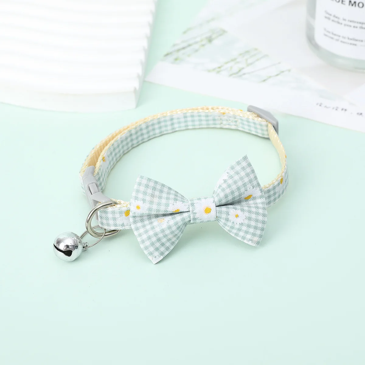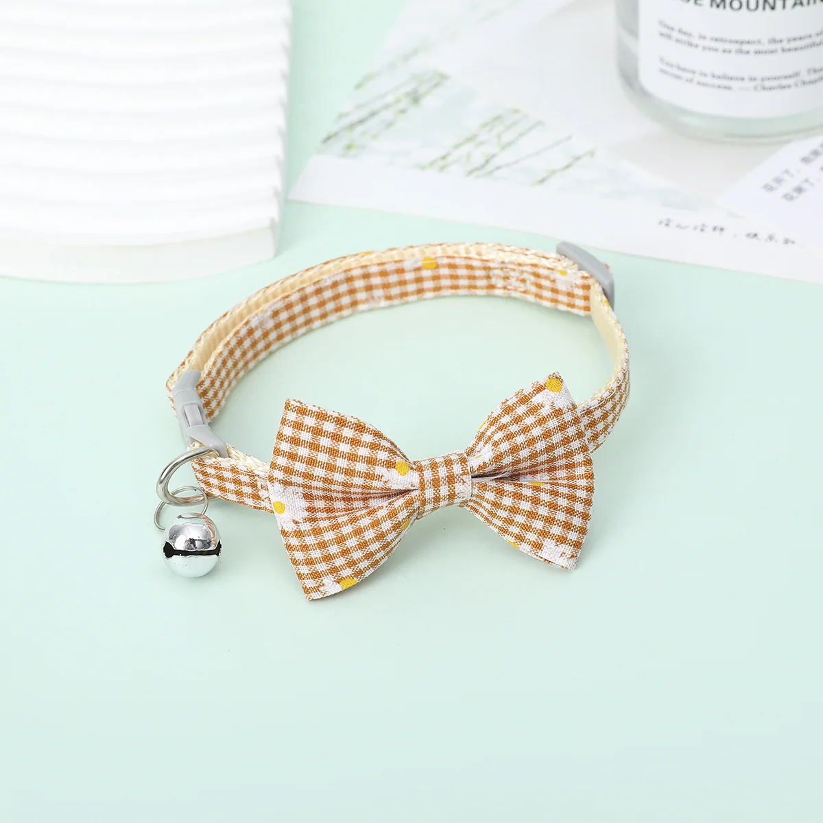 Collar de lazo a cuadros para mascotas, margaritas a cuadros, girasol, gato, perro, lazo extraíble, lindo cachorro, gatito, suministros para gatos, 1 Pc