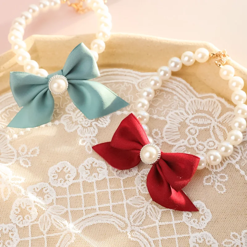 Collar con lazo de perlas para mascotas, Collar para perro, Collar con campana para perro, joyería Vintage, Collar con lazo para mujer, accesorios para gato