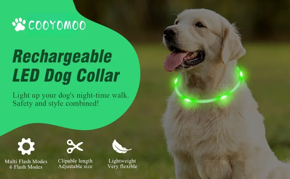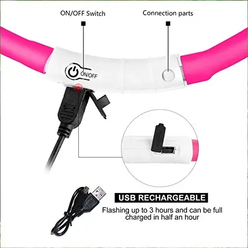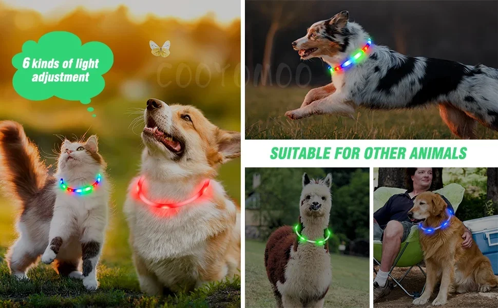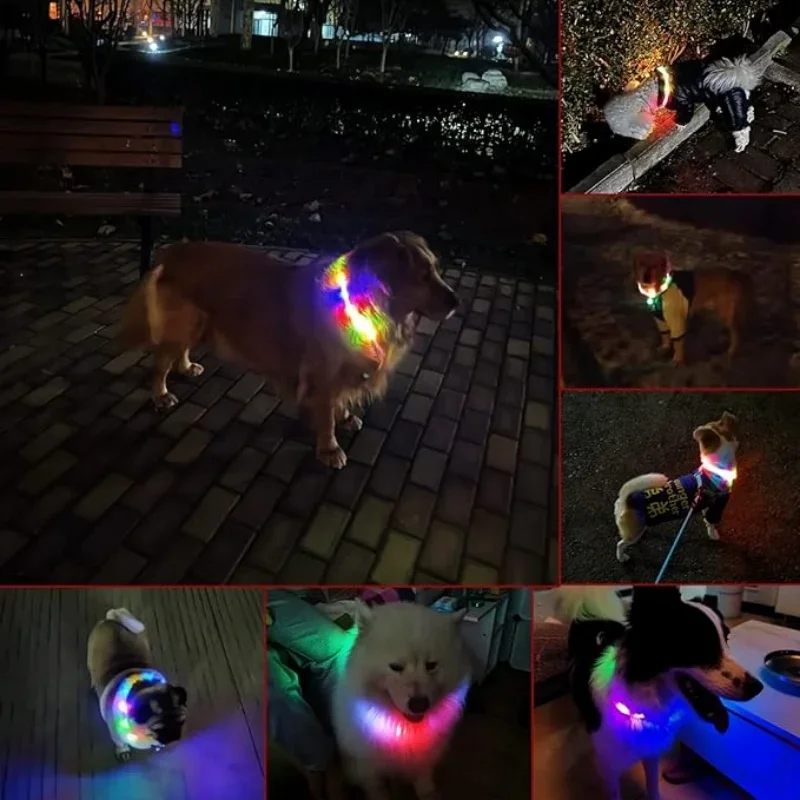 Collar Luminoso con Led para Perro y Gato, Accesorio de Silicona Suave Brillante para Prevención de Pérdidas, Accesorio de Noche para Mascotas, 4 ModosAcerca de este producto【Potente luz LED】El collar de perro con luz LED puede parpadear muy intensamente en la oscuridad. Mucho más alto que otros accesorios reflectantes. Proporciona visibilidad de 360 grados en cualquier clima y condiciones de poca luz. El collar brillante ayuda a su mascota a mantenerse segura y visible, incluso en la oscuridad
