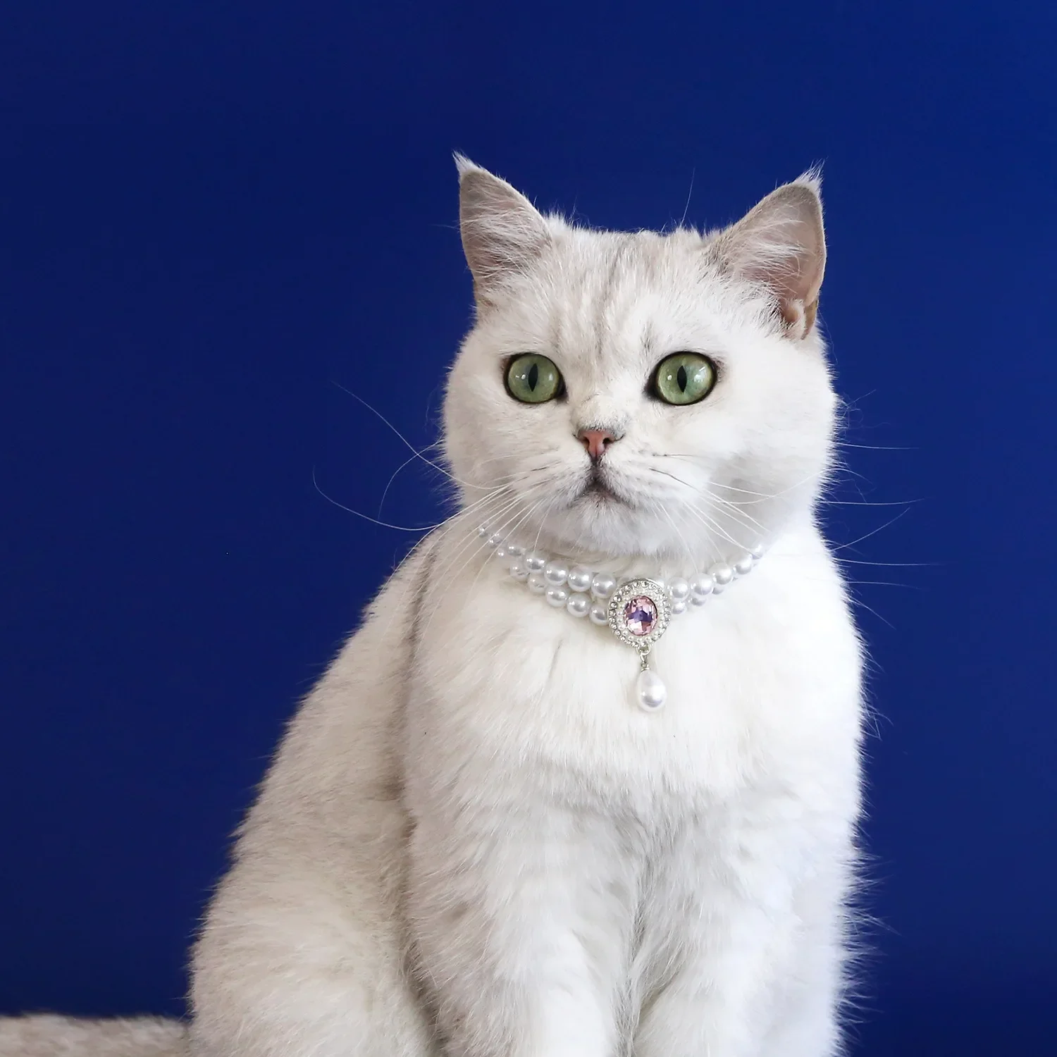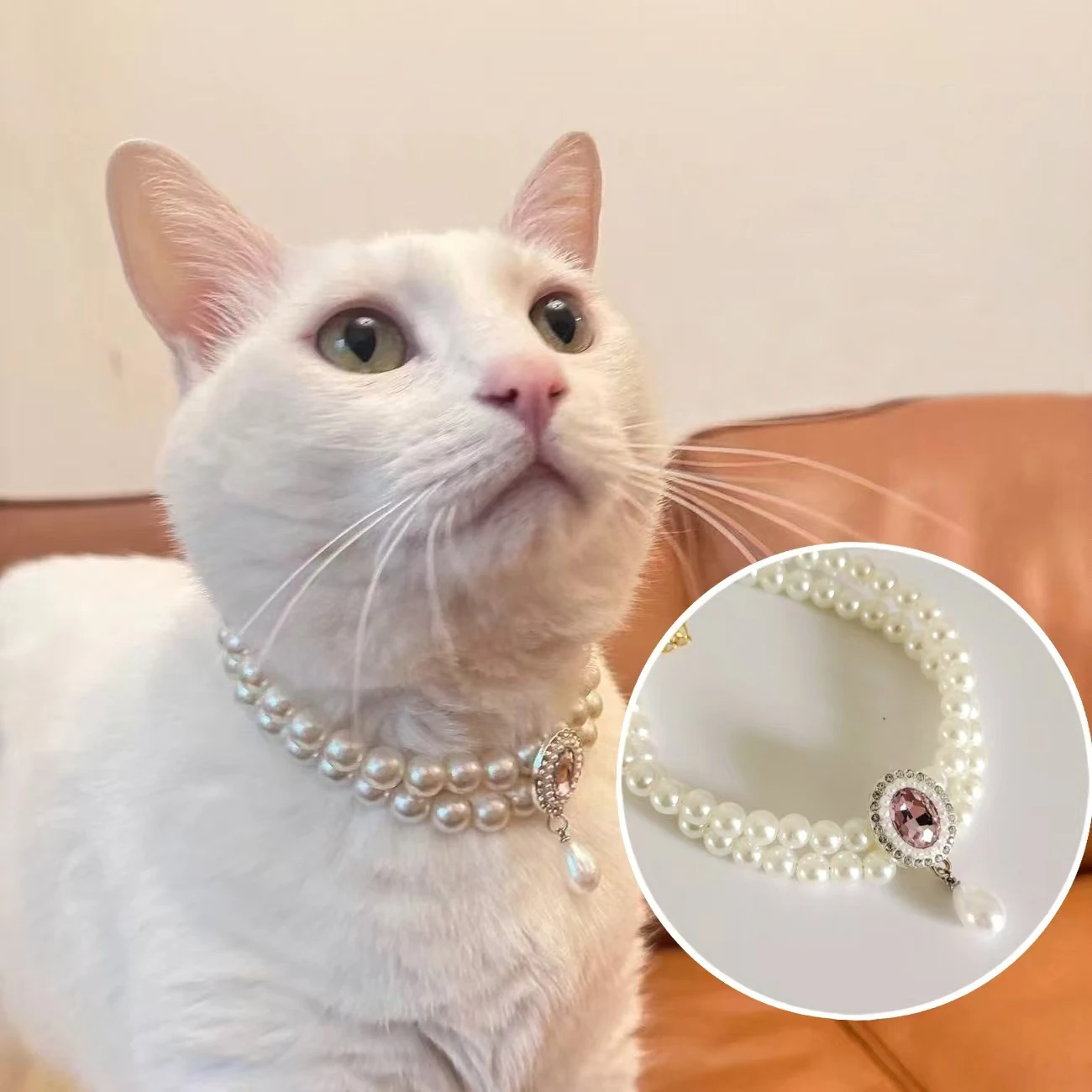 Collar de gato de perlas de 2 filas de lujo, joyería con colgante de corazón de diamante ostentoso, accesorios de cristal de moda ajustables para cachorros de gatos pequeños y medianos