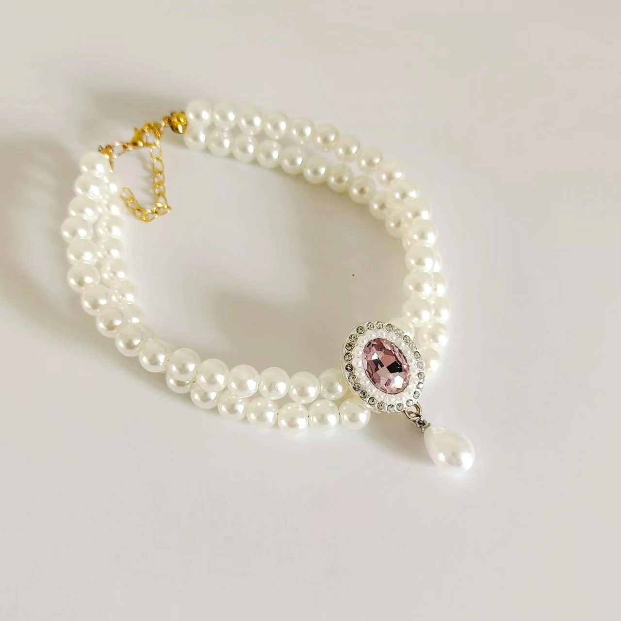 Collar de lujo con 2 filas de perlas para cachorros y gatos, accesorios de joyería de cristal para mascotas a la moda con colgante de corazón de diamante brillante