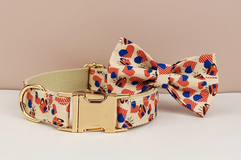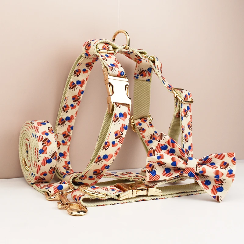 Collar de lujo Correa arnés para perro logotipo personalizado TS accesorios collar de perro Correa arnés conjunto bandera americana Collar para perro con pajarita