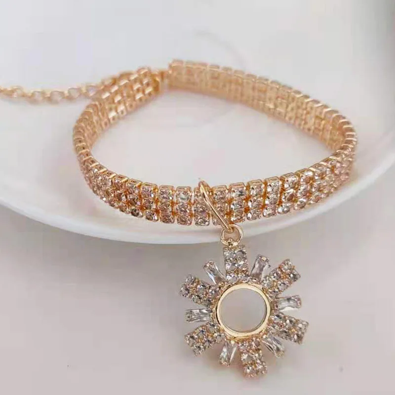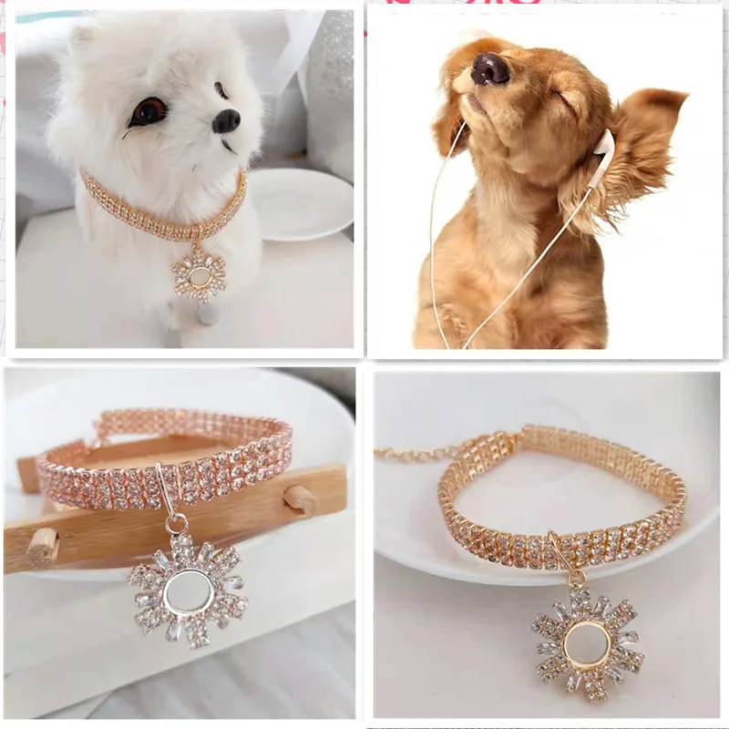 Collar de lujo con diamantes de imitación para perro y gato, Collar de cachorro para perros pequeños, accesorios de joyería de cristal para fiesta de graduación y boda, 3 filas