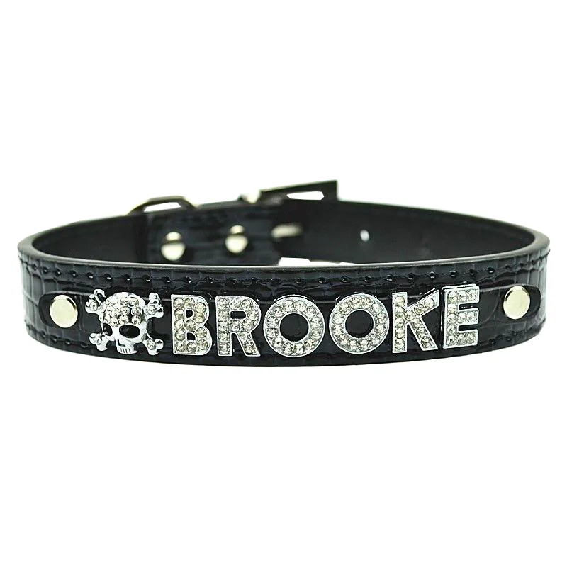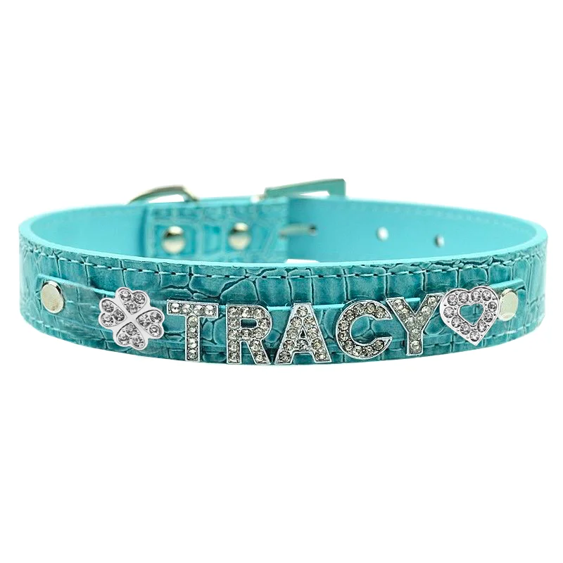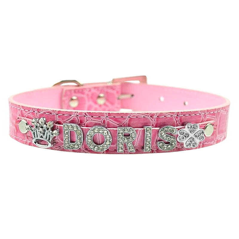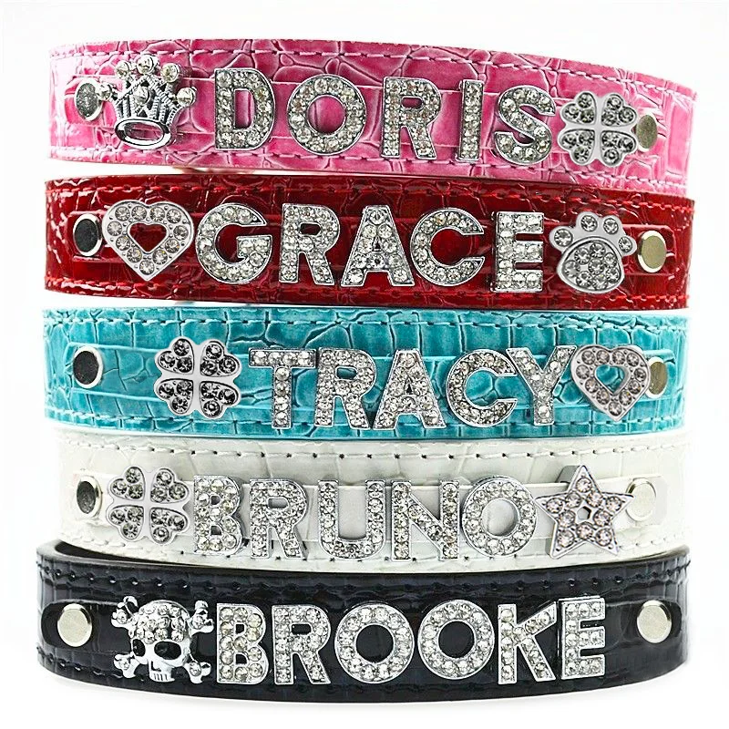 Collar de lujo personalizado DIY para mascotas, Collar de cocodrilo de Pu, Collar para perro y gato, Collar para perro pequeño y mediano, cuero con diamantes de imitación ostentosos