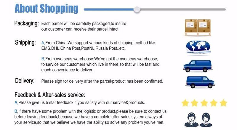 Aceptamos el envío directo y al por mayor, para la venta al por mayor, no dude en contactarnos para obtener el mejor precio. Para el envío directo, podemos enviar los productos directamente a su cliente sin dejar información sobre nosotros si lo desea.