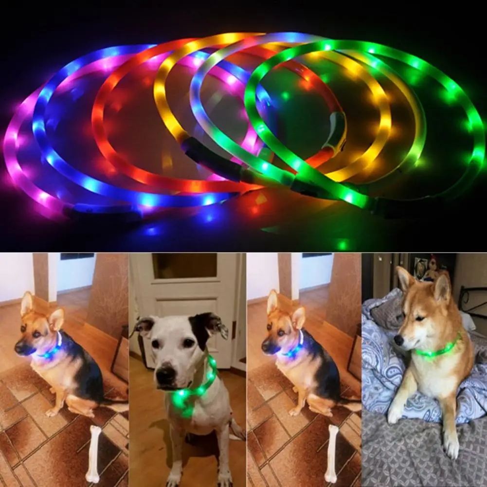 Collar luminoso brillante Anti-Pérdida recargable silicona perro luminoso intermitente Collar para exteriores