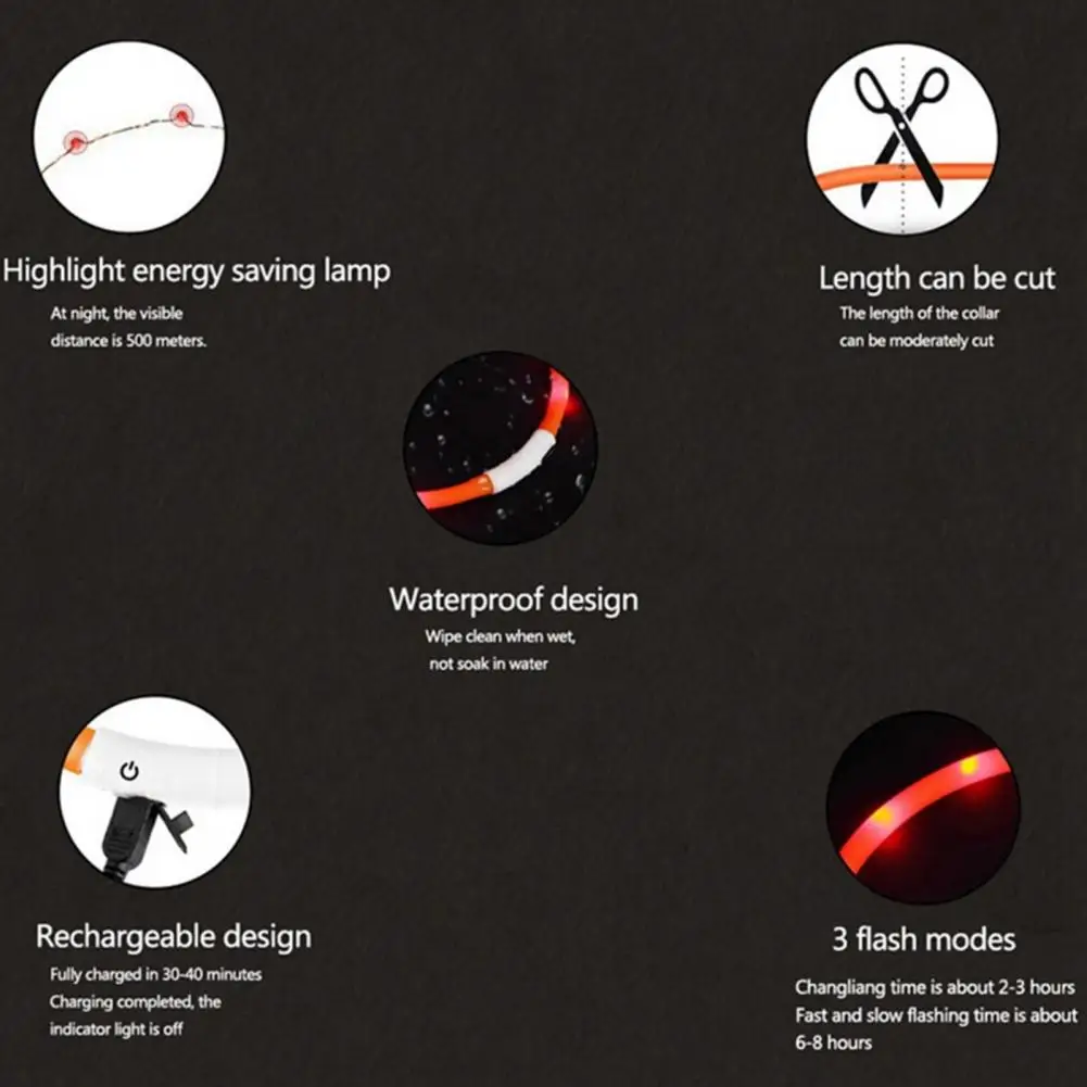 Este collar luminoso para perros es adecuado para el uso diario, al aire libre, etc.
