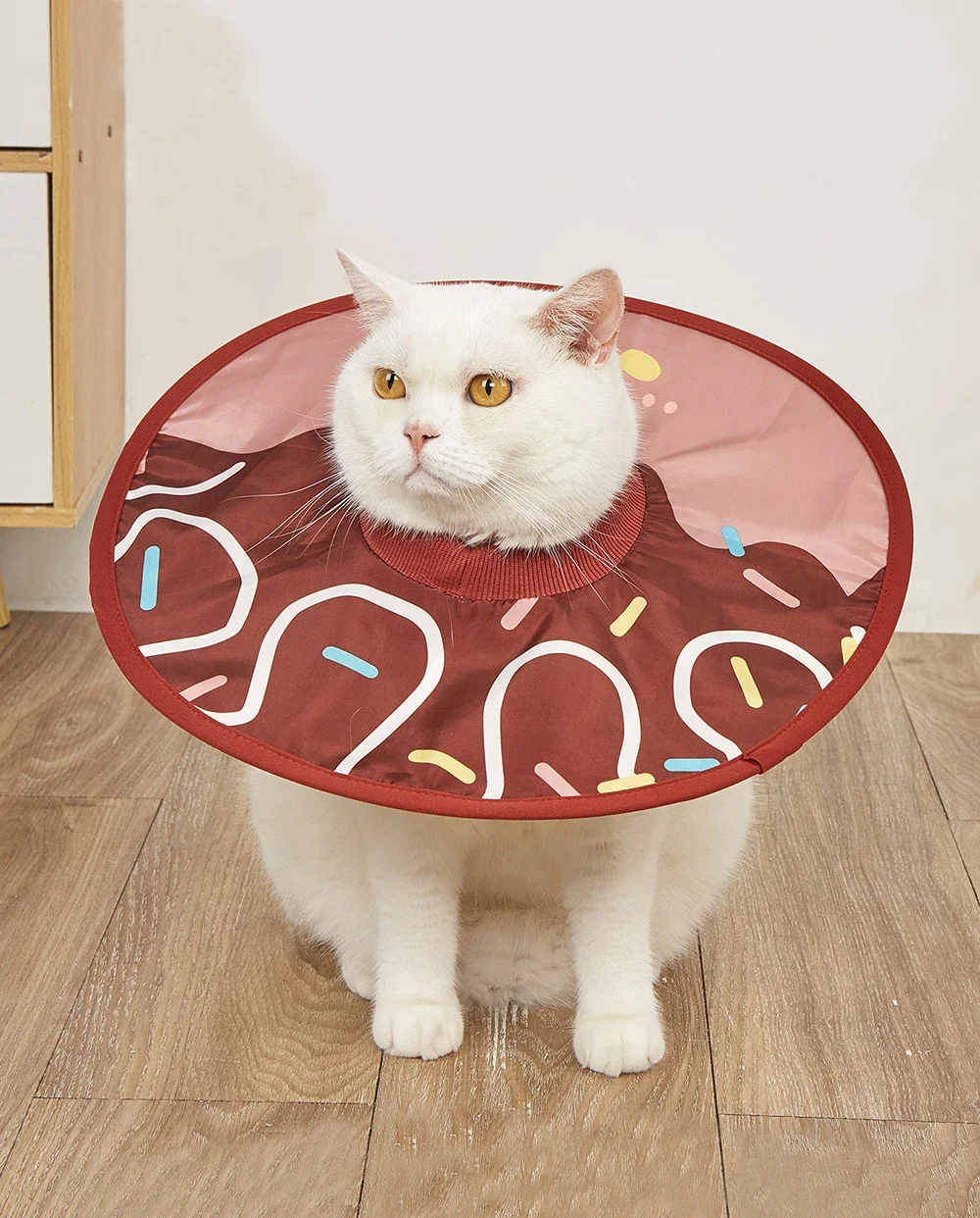 El tamaño del cuello queda bien, pero este gato no cabe en el baño... Quité el alambre y cosí en algodón.