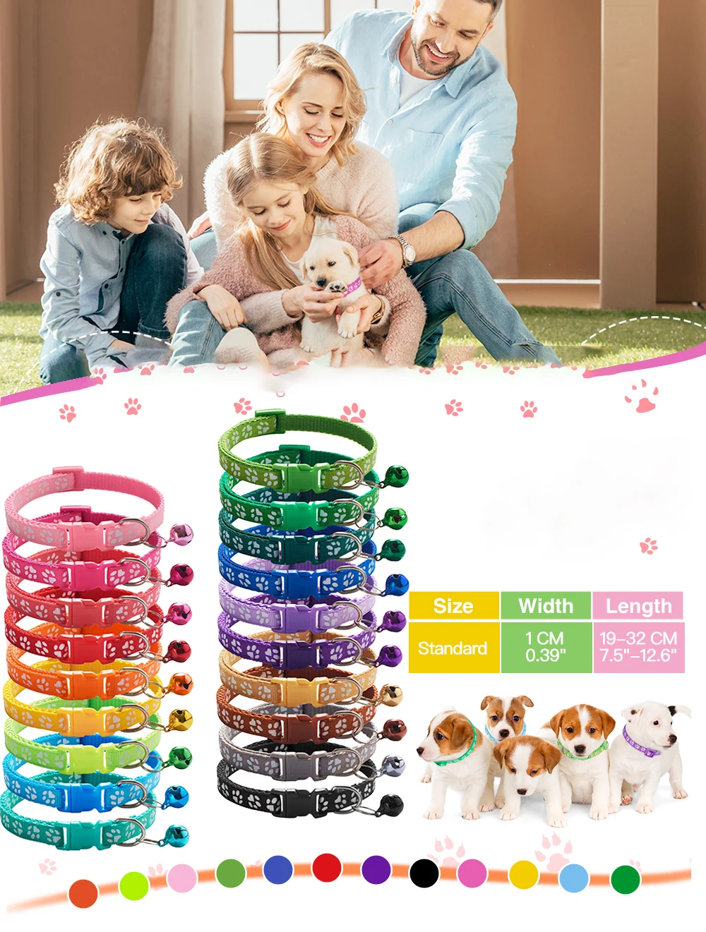 Especificación: 1,0 cm de ancho, 19-32cm de circunferencia del cuello, adecuado para gatos y perros pequeños
