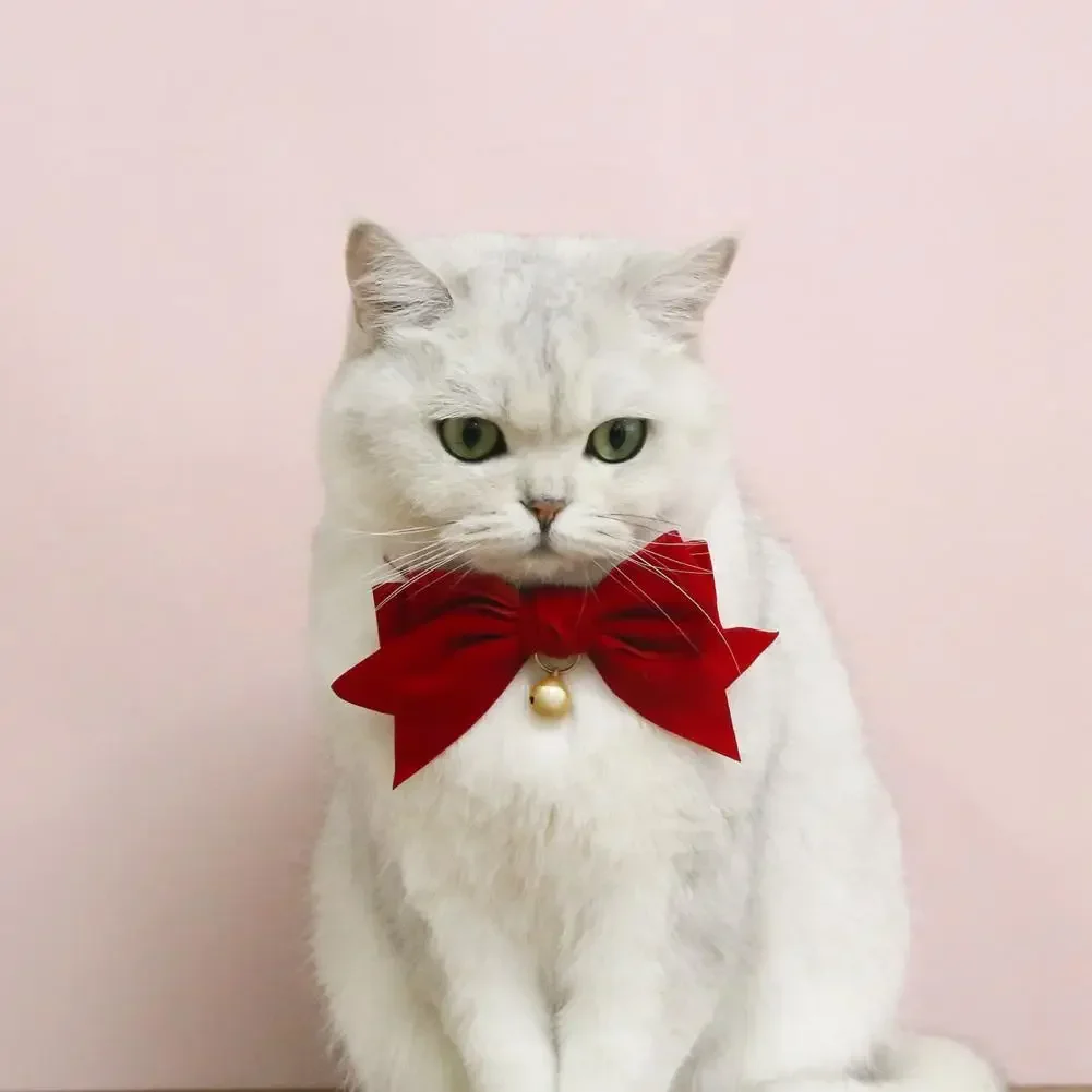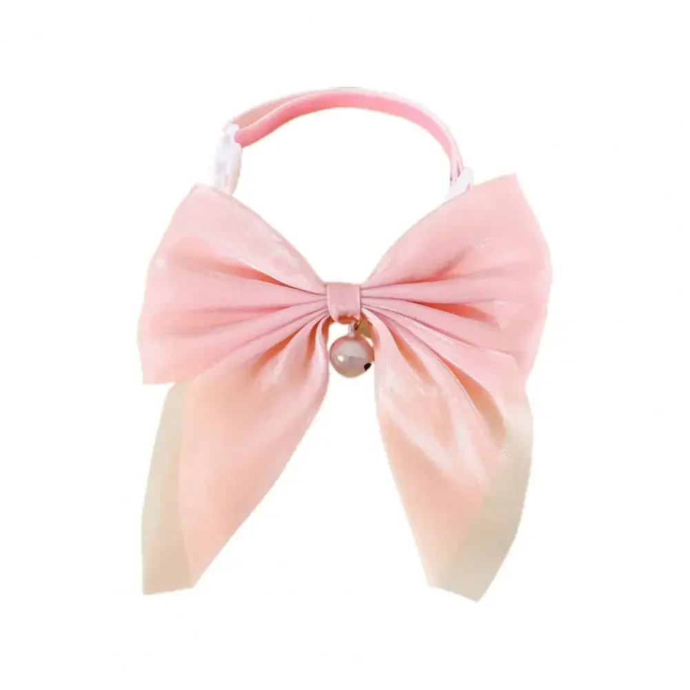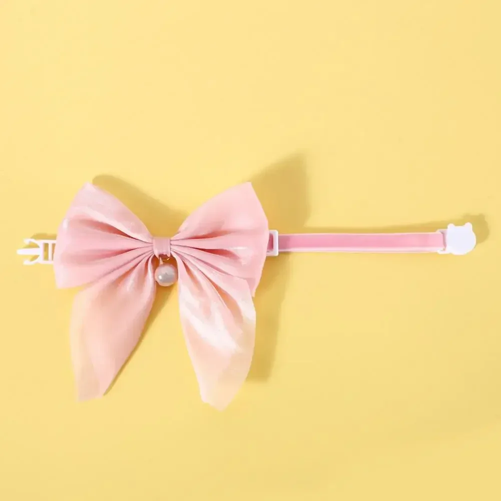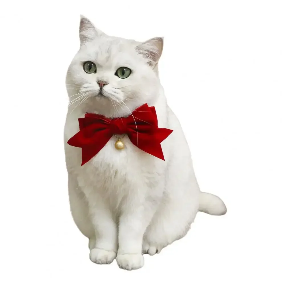 El collar para mascotas está decorado con lazos y campanas grandes, que tienen una mano de obra exquisita y hacen que su mascota lo use con mayor elegancia.Se adopta una hebilla de seguridad con forma de cabeza de gato, que es conveniente para poner y quitar.