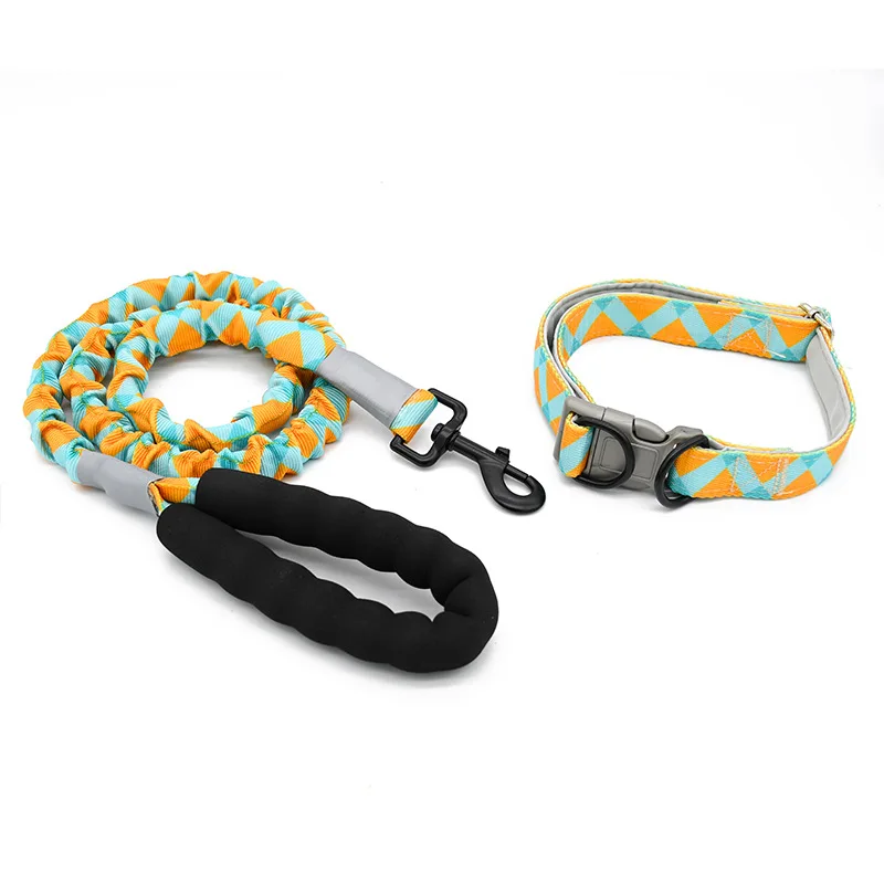 Collar para mascotas con juego de correa, correa para perro ajustable y retráctil con mango de espuma, correa elástica antienredos para entrenamiento de mascotas y caminar