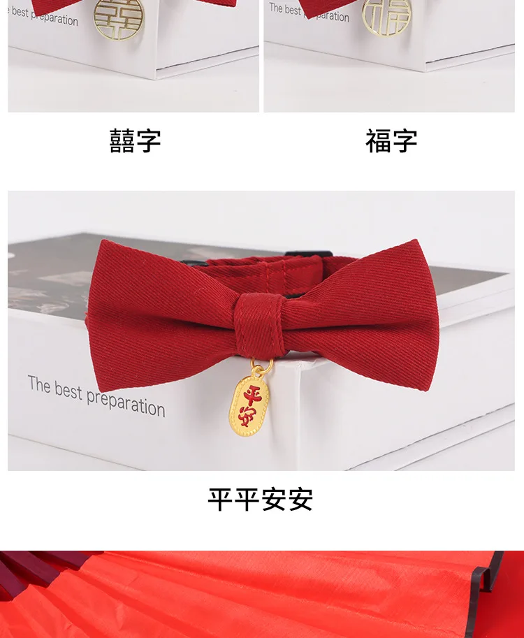 Collar para mascotas, pajarita roja de doble felicidad, accesorios para mascotas, Collar, pajarita para perros y gatos