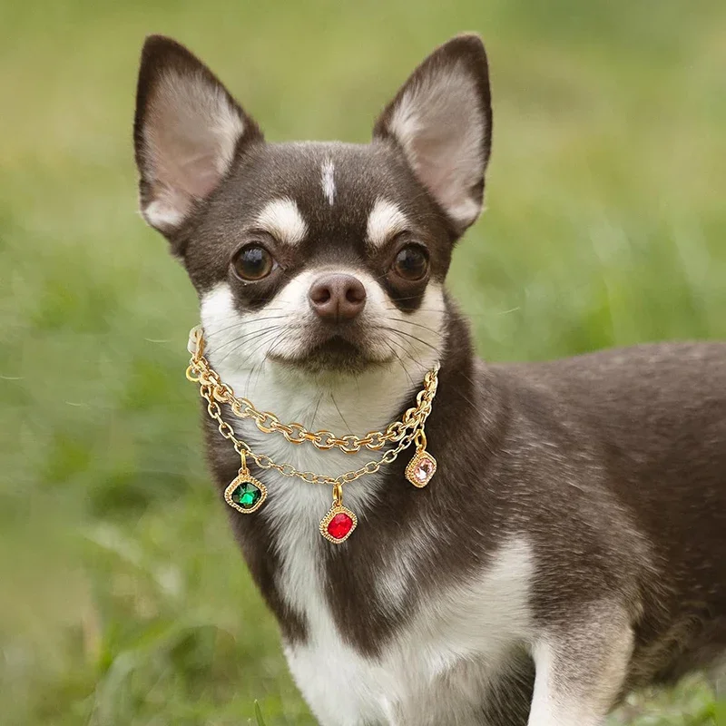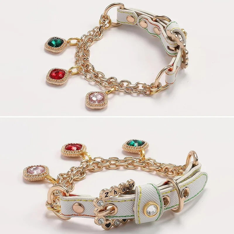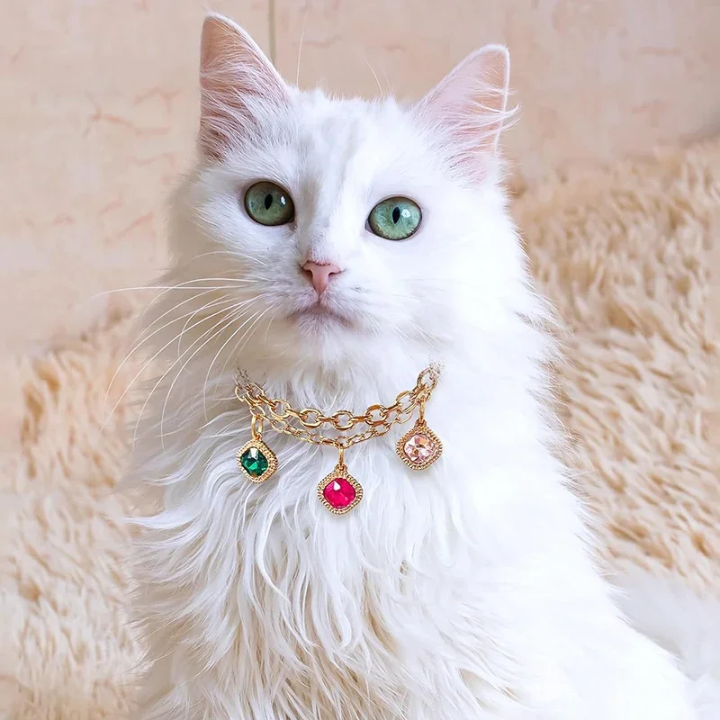 【Collares giratorios brillantes exclusivos para mascotas con dijes de diamantes coloridos】 ¡Con un rendimiento como ningún otro, artículo imprescindible para sus gatos elegantes y perros pequeños!Este colorido collar para perros con diamantes no solo se puede usar como accesorio de moda para su mascota, sino que también viene con un anillo en D como collar para sujetar la correa.
