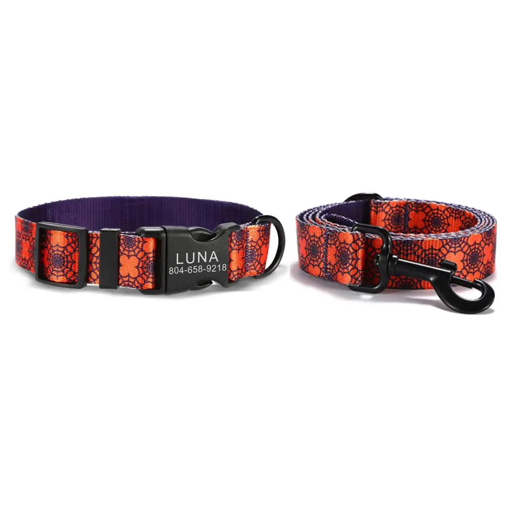 Nombre del producto: Collar personalizado para mascotas, placa con identificación personalizada, telaraña ajustable, collares para perros y gatos de fibra suave, correa de plomo