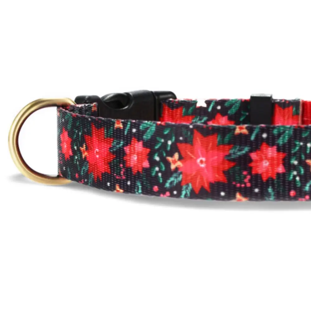 Nombre del producto: Collar personalizado para mascotas, placa con identificación personalizada, flores rojas ajustables, collares para perros y gatos de fibra suave, correa de plomo