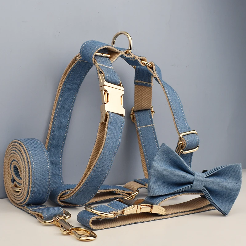 Collar de perro de mezclilla de fondo desnudo correas arnés de perro de impresión