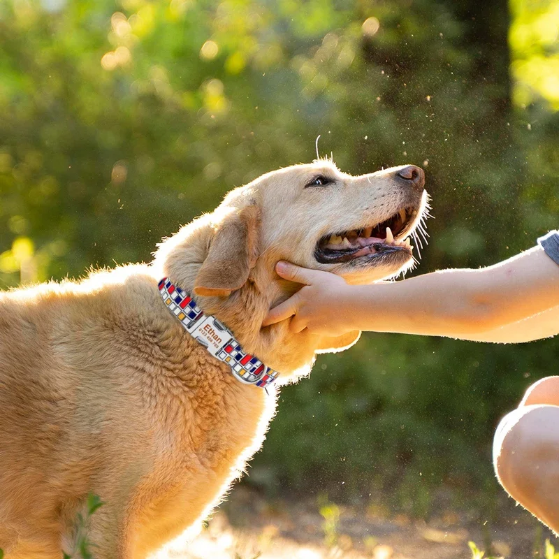 Collar de nailon a cuadros para perros Unisex para niño y niña, Collar de perro pequeño y grande personalizado, producto, collares para perros, etiqueta de identificación de nombre grabada gratis personalizada