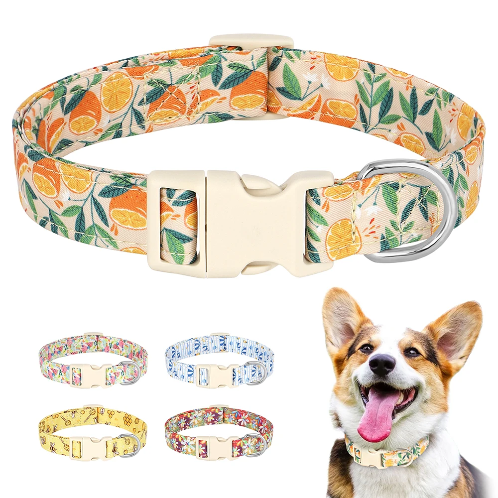 Collar de perro con estampado bonito, collares ajustables de nailon para perros, collar con patrón de flor de abeja naranja, collar para mascotas para perros pequeños, medianos y grandes