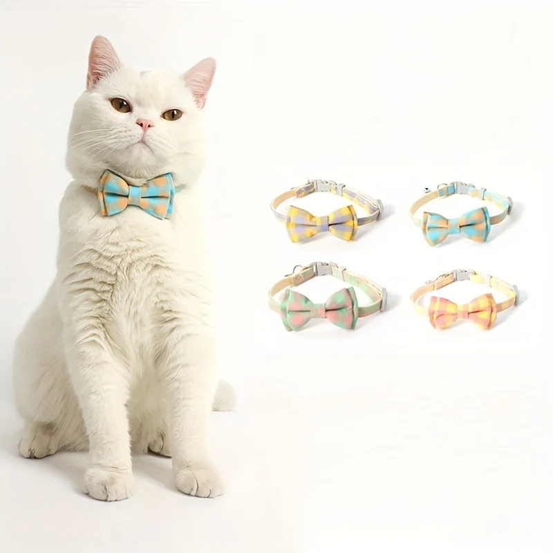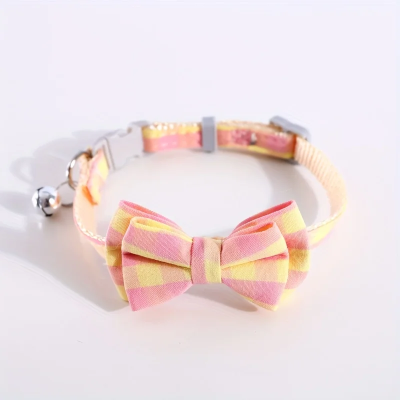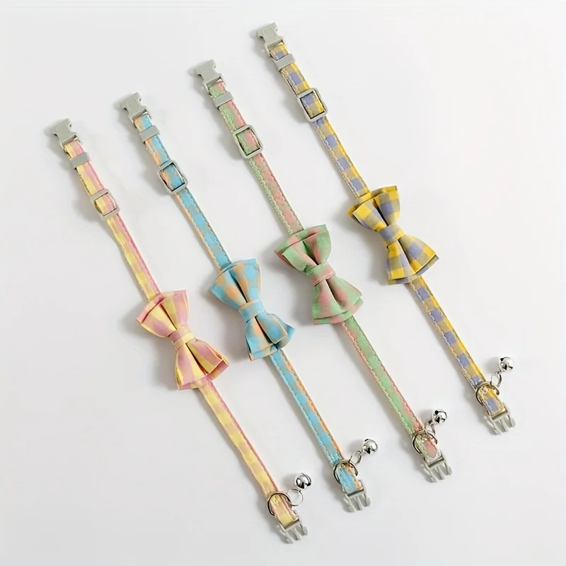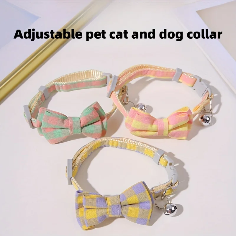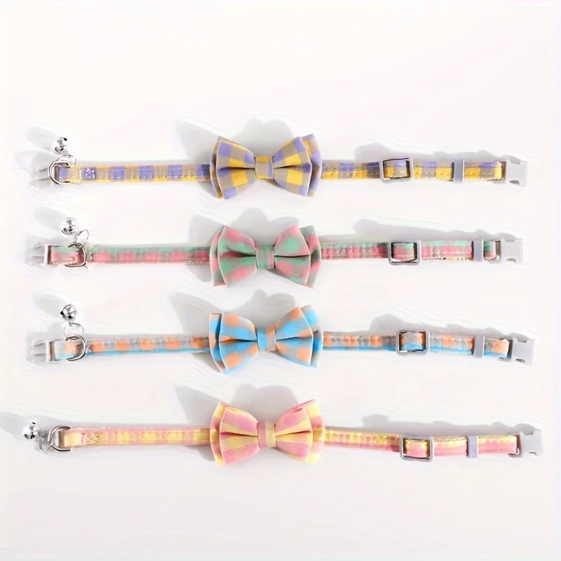 Collar de nailon ajustable para gato con campana y pajarita a cuadros, bonito Anillo para el cuello para gatito, Collar para perro pequeño, accesorios para mascotas, 12 unidades