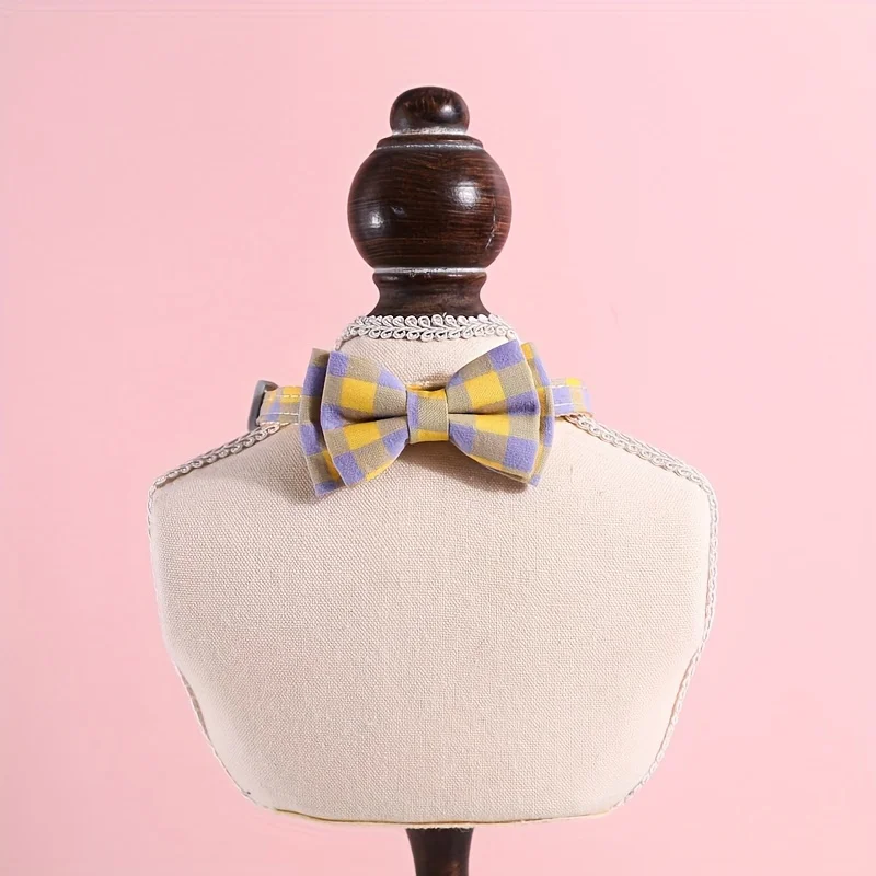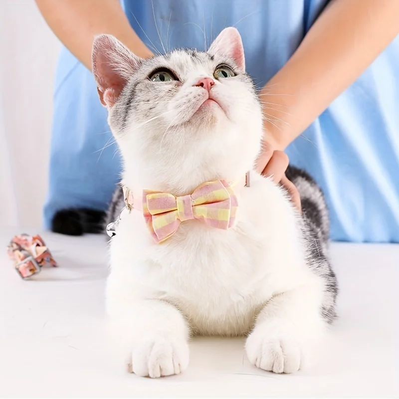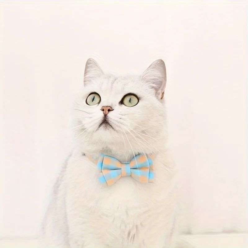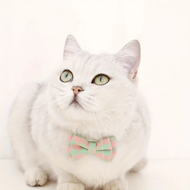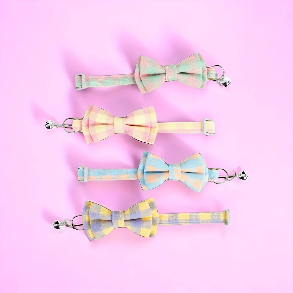 Collar de nailon ajustable para gato con campana y pajarita a cuadros, bonito Anillo para el cuello para gatito, Collar para perro pequeño, accesorios para mascotas, 12 unidades