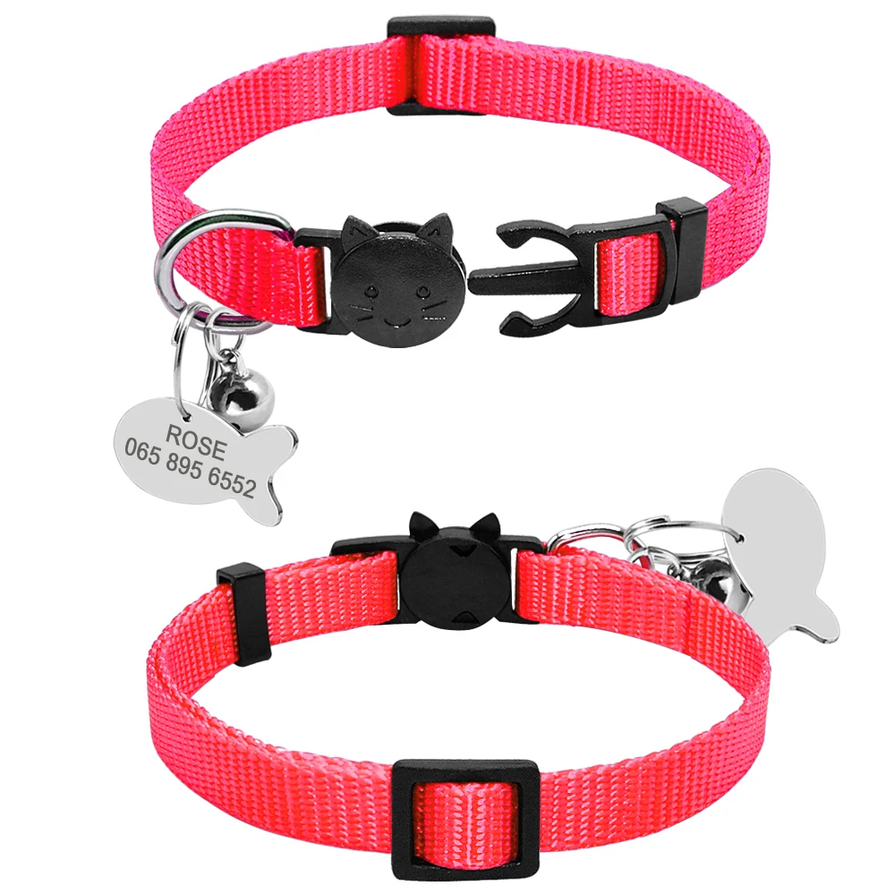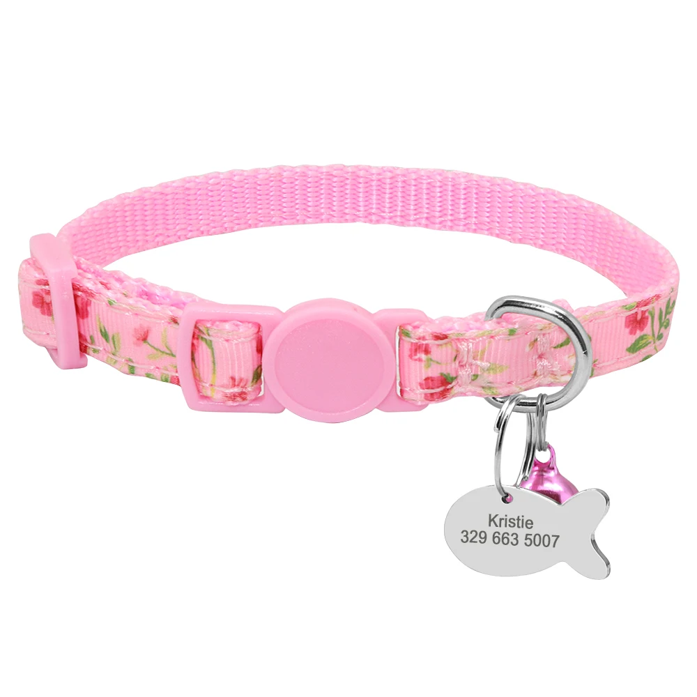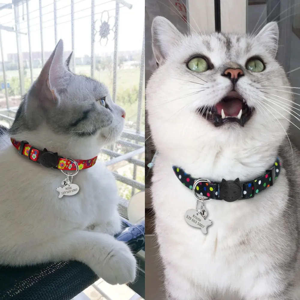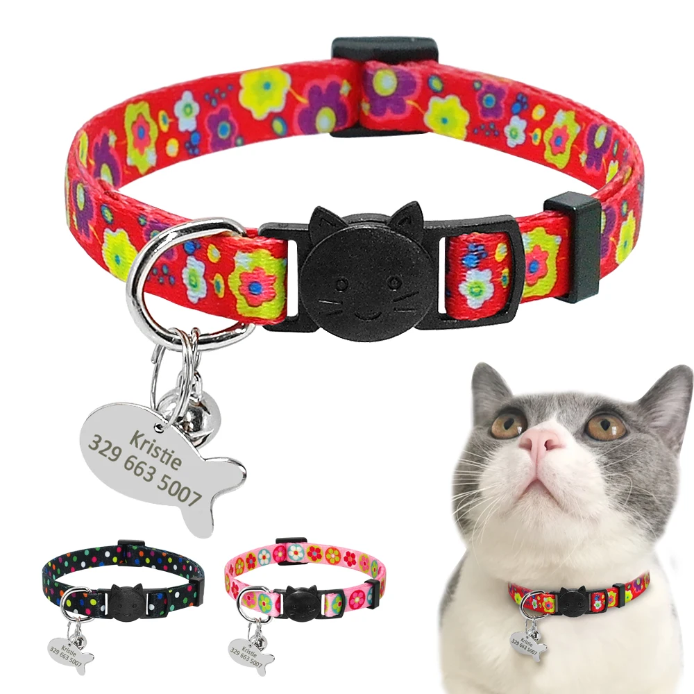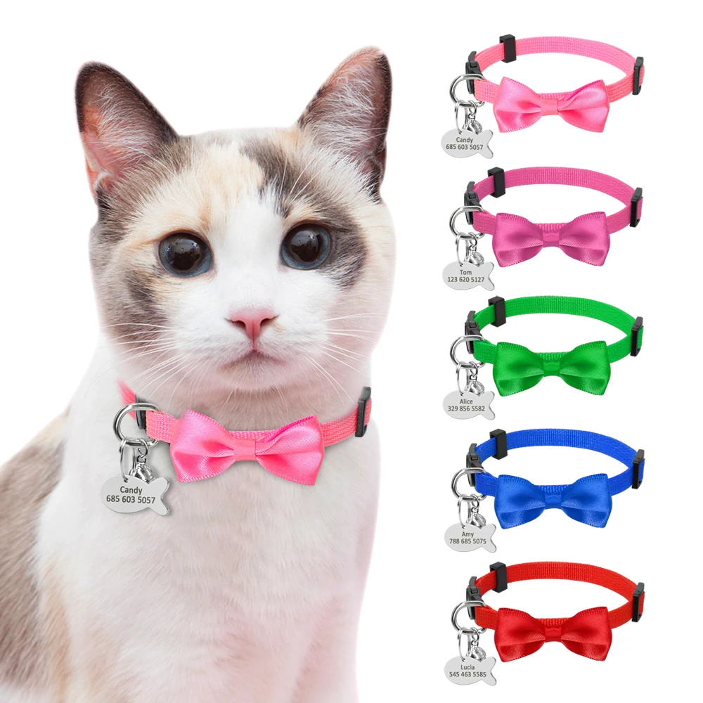 Collar de nailon ajustable para gatos grabados, bonita etiqueta de identificación personalizada, accesorios para cachorros, collares para perros pequeños, gatos, suministros para mascotas