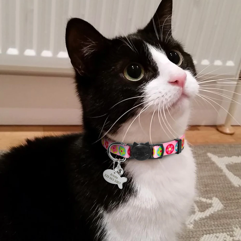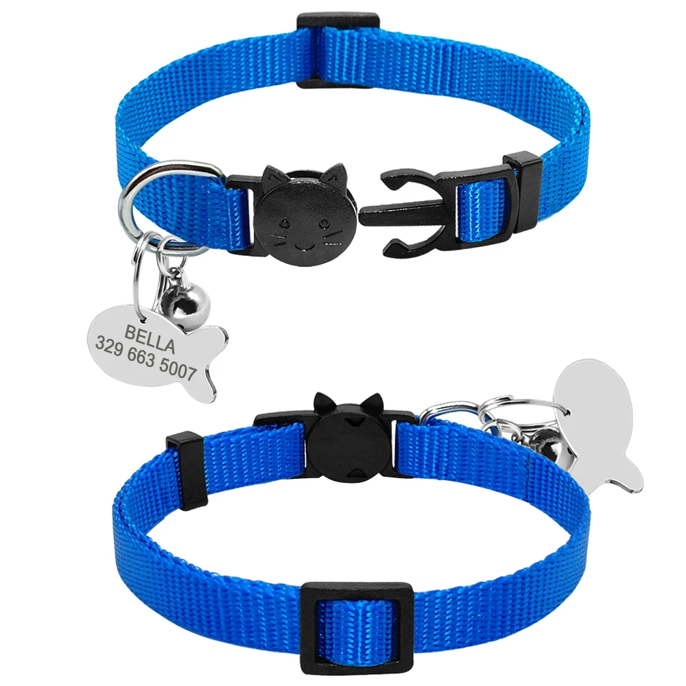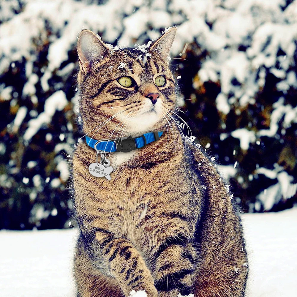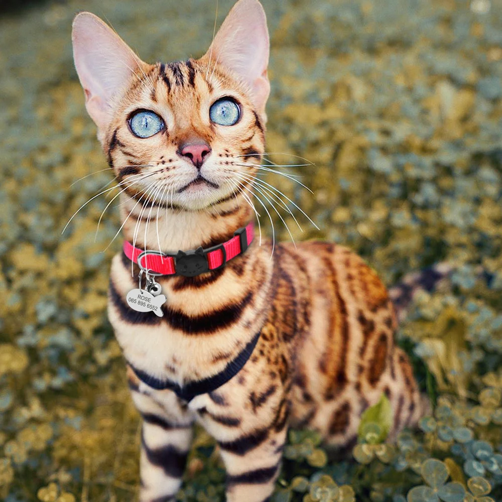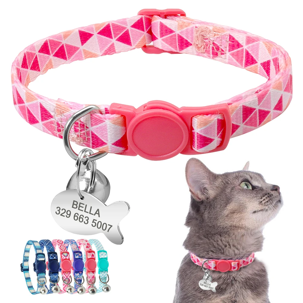 Collar de nailon ajustable para gatos grabados, bonita etiqueta de identificación personalizada, accesorios para cachorros, collares para perros pequeños, gatos, suministros para mascotas