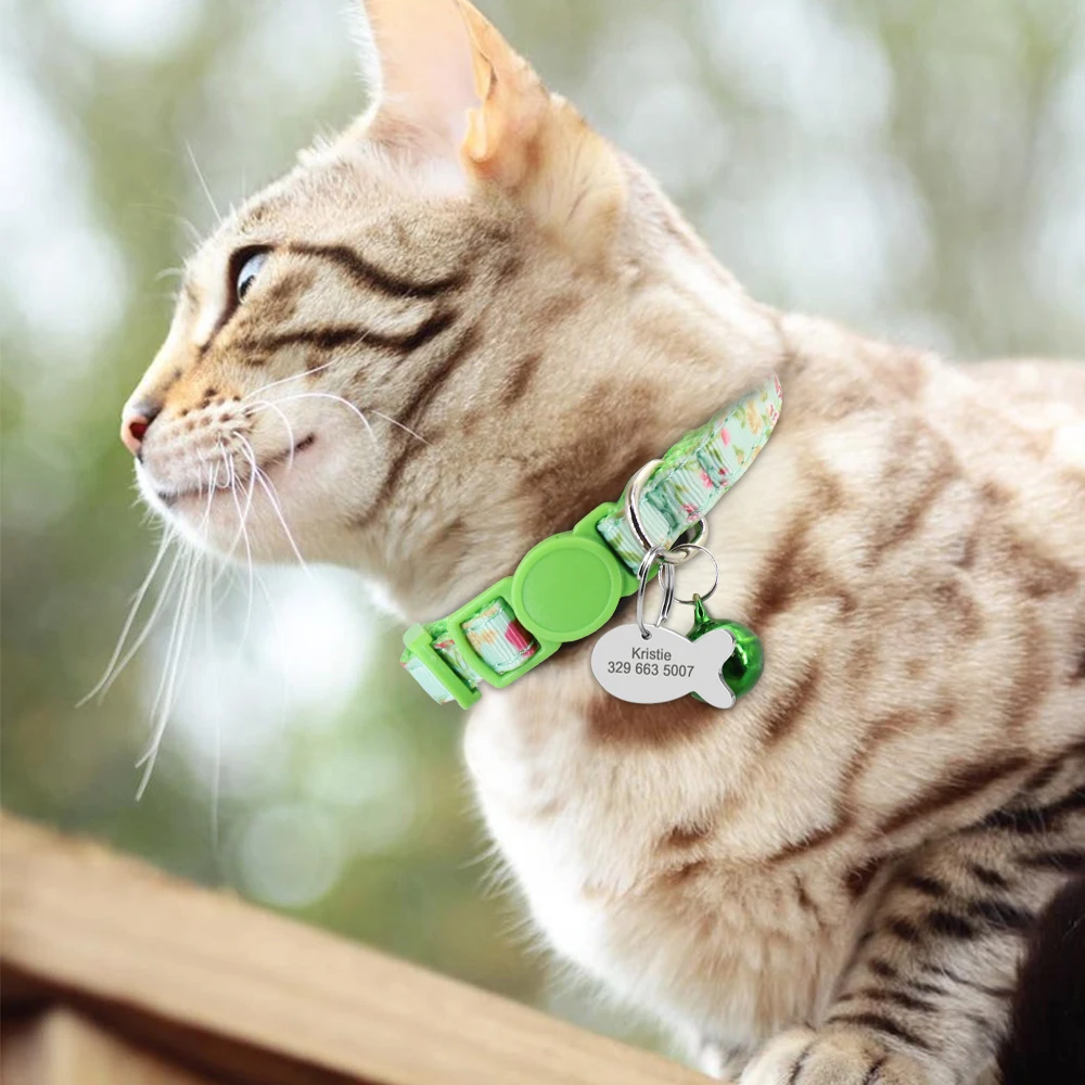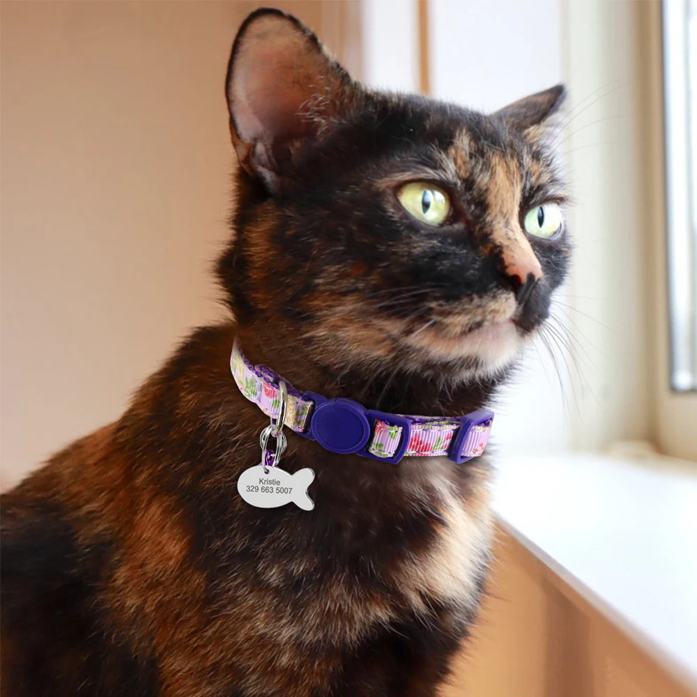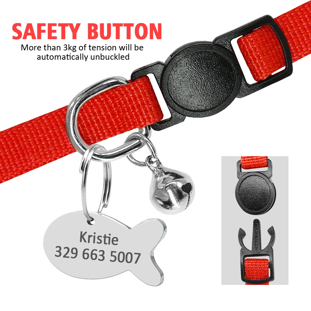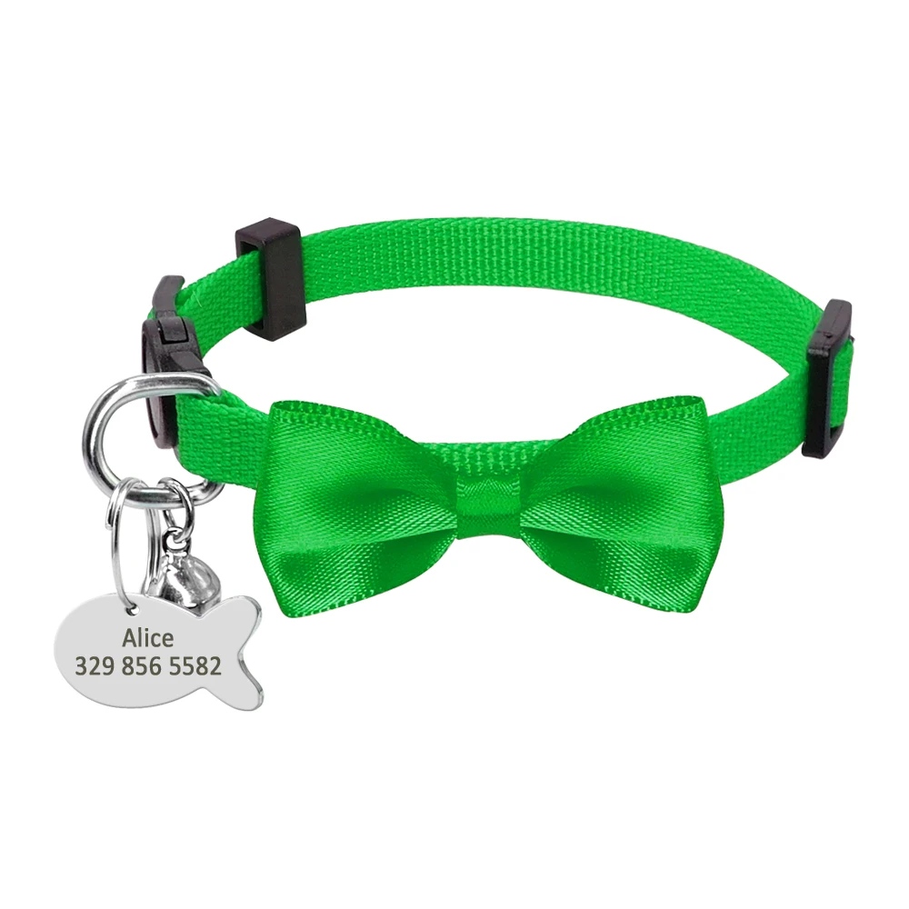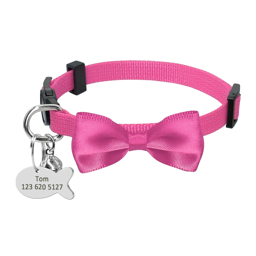 Collar de nailon ajustable para gatos grabados, bonita etiqueta de identificación personalizada, accesorios para cachorros, collares para perros pequeños, gatos, suministros para mascotas