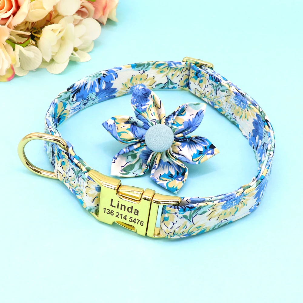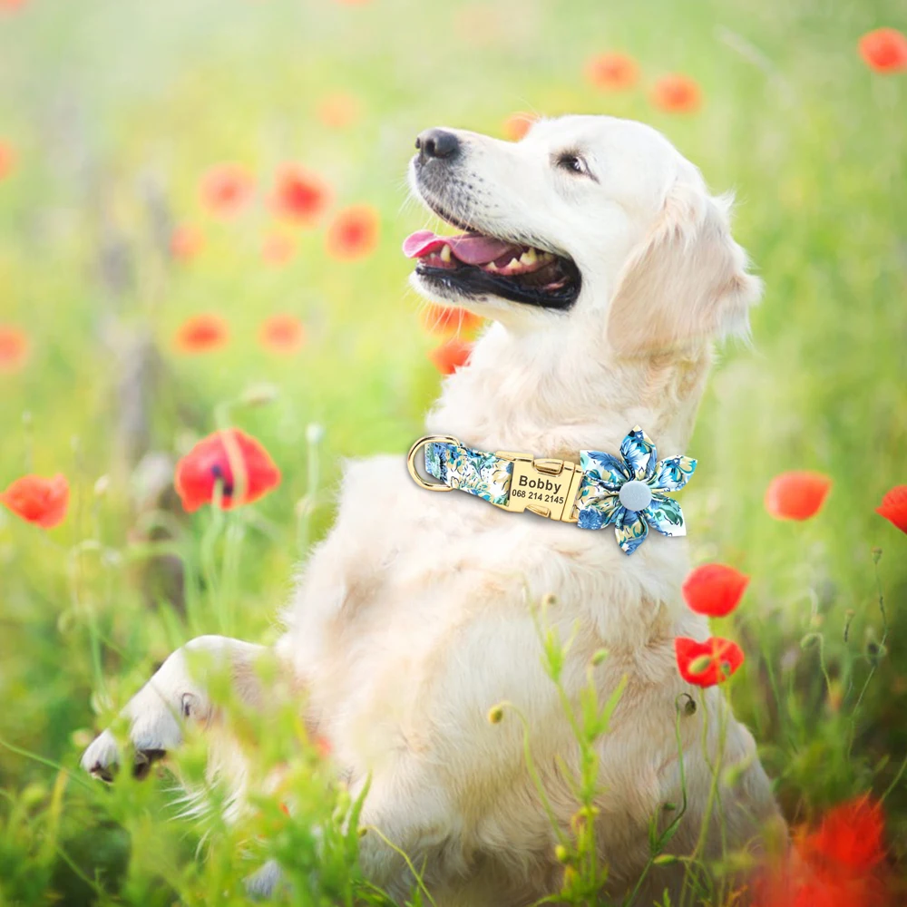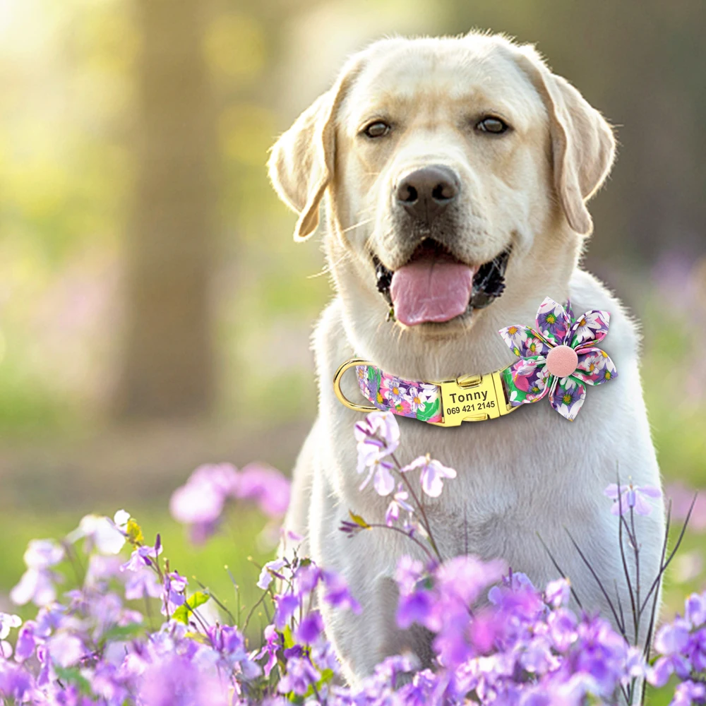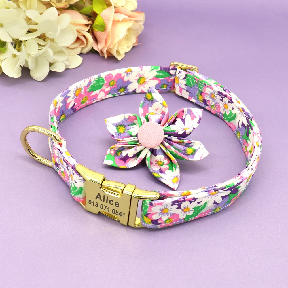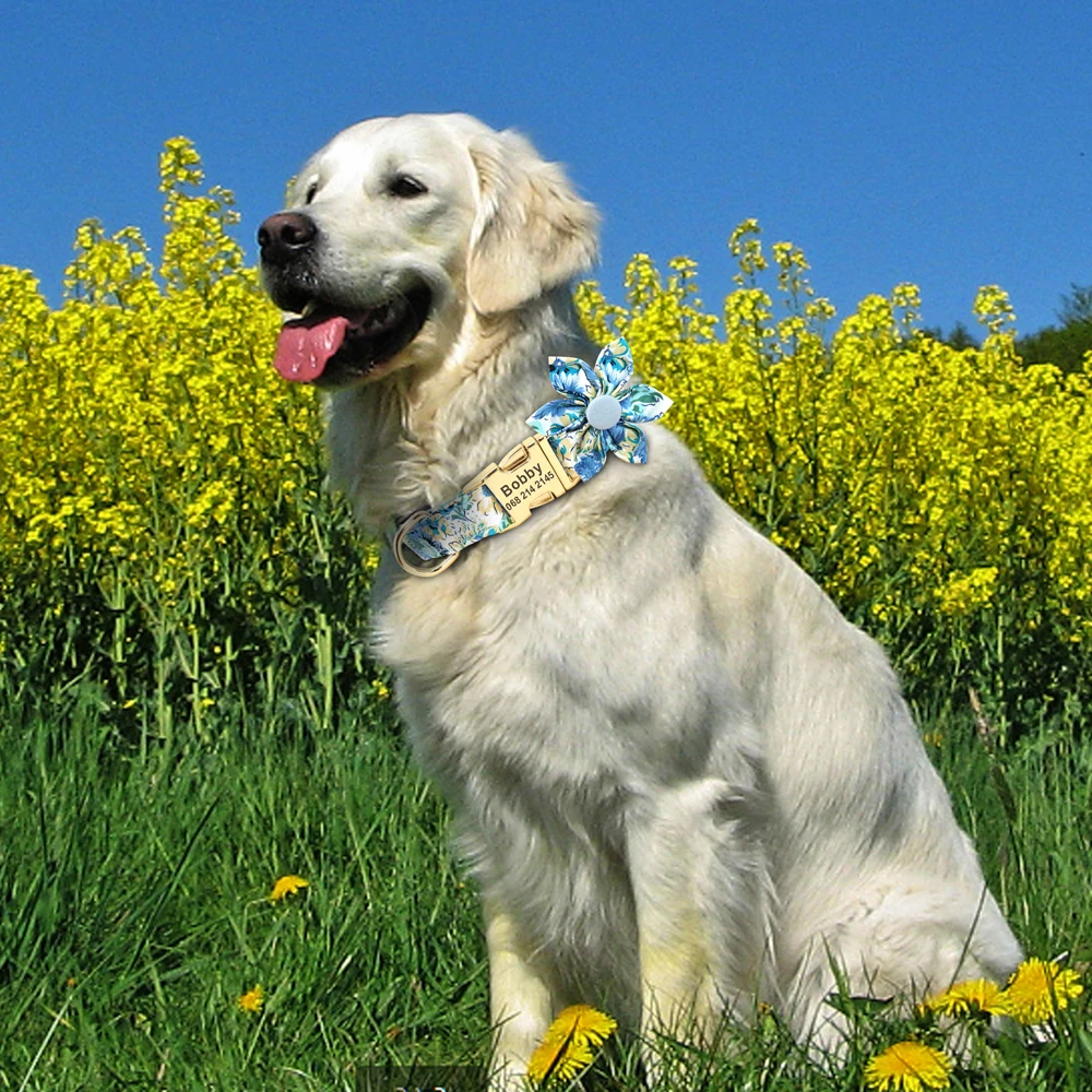 Nombre: Collar de perro con estampado de flores de nailon, collares de perro personalizados con flores, Collar de cachorro, nombre personalizado para perros pequeños, medianos y grandes, S, M, L.