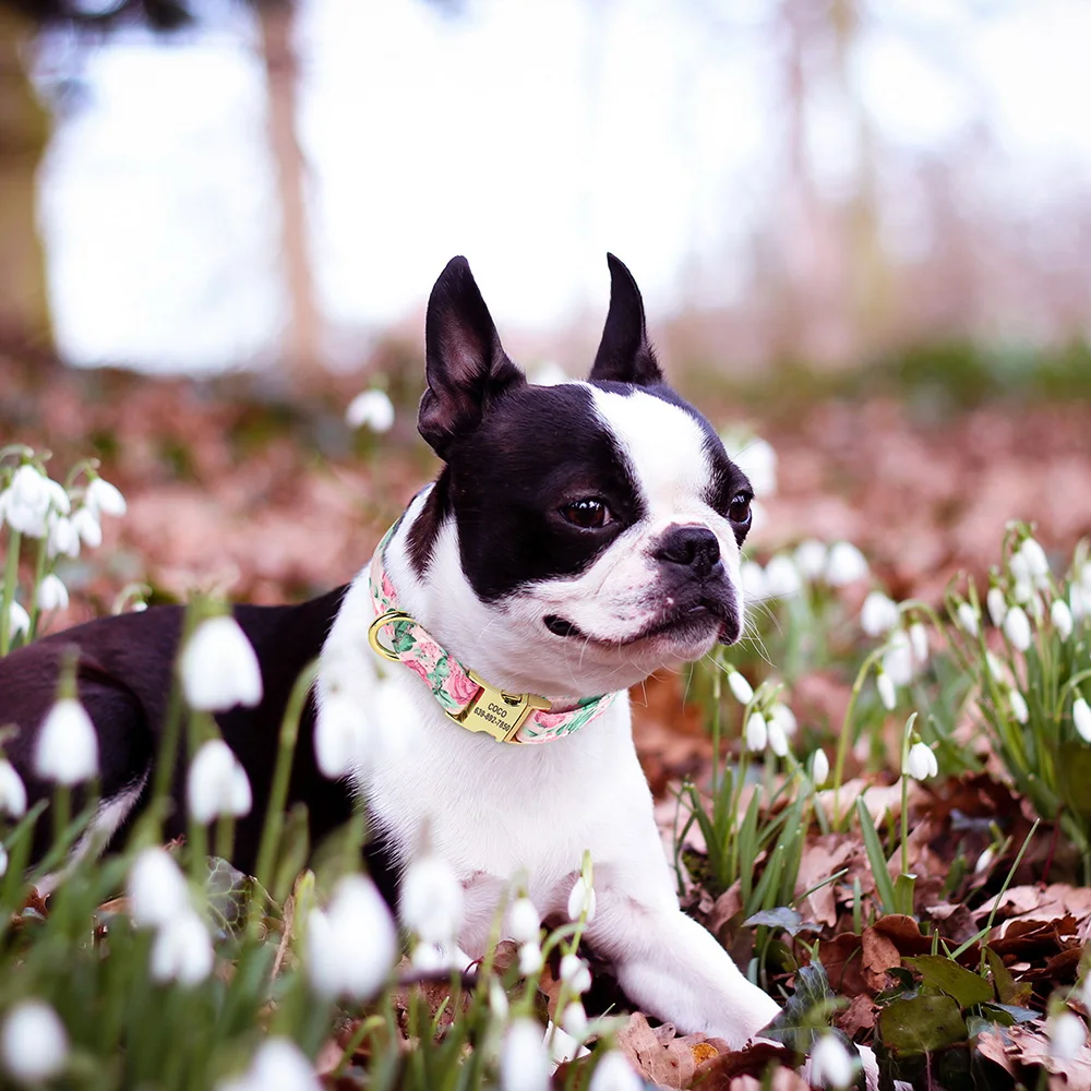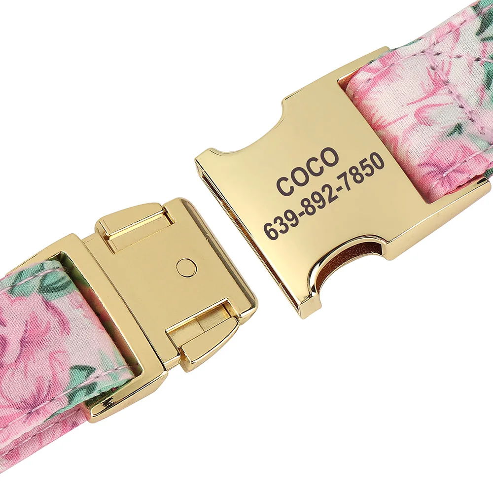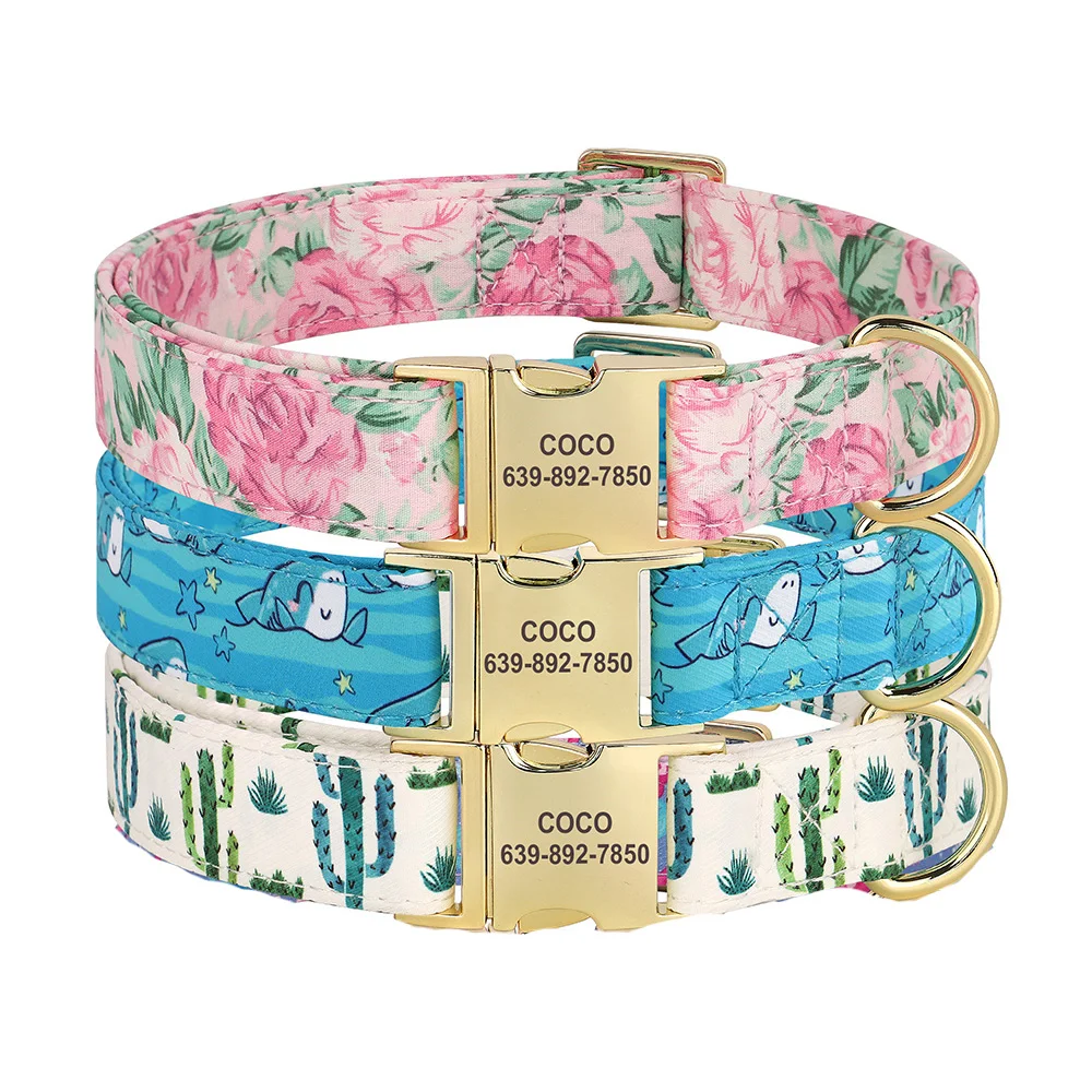 Collar de flores para perros, collares de identificación personalizados para perros, Collar con hebilla para mascotas con estampado de nailon, ajustable para perros pequeños, medianos y grandes, S M L