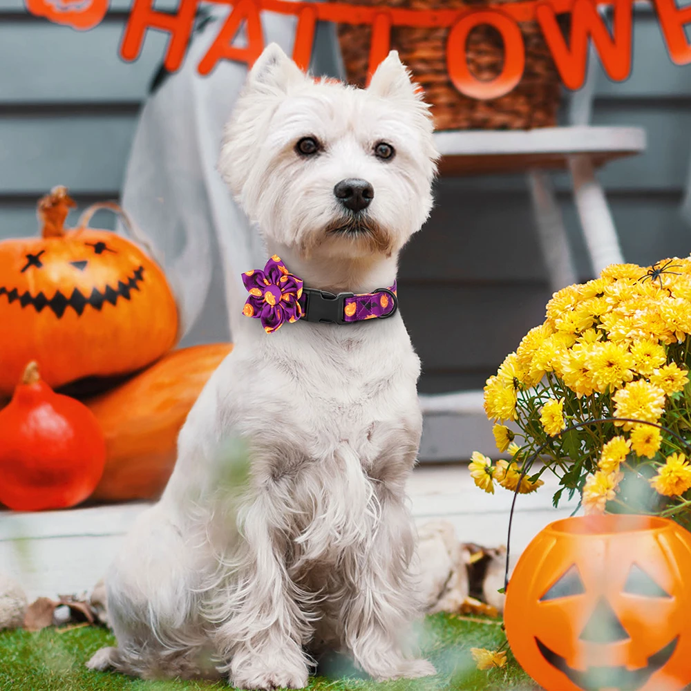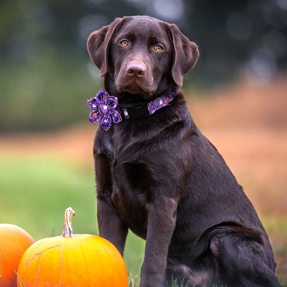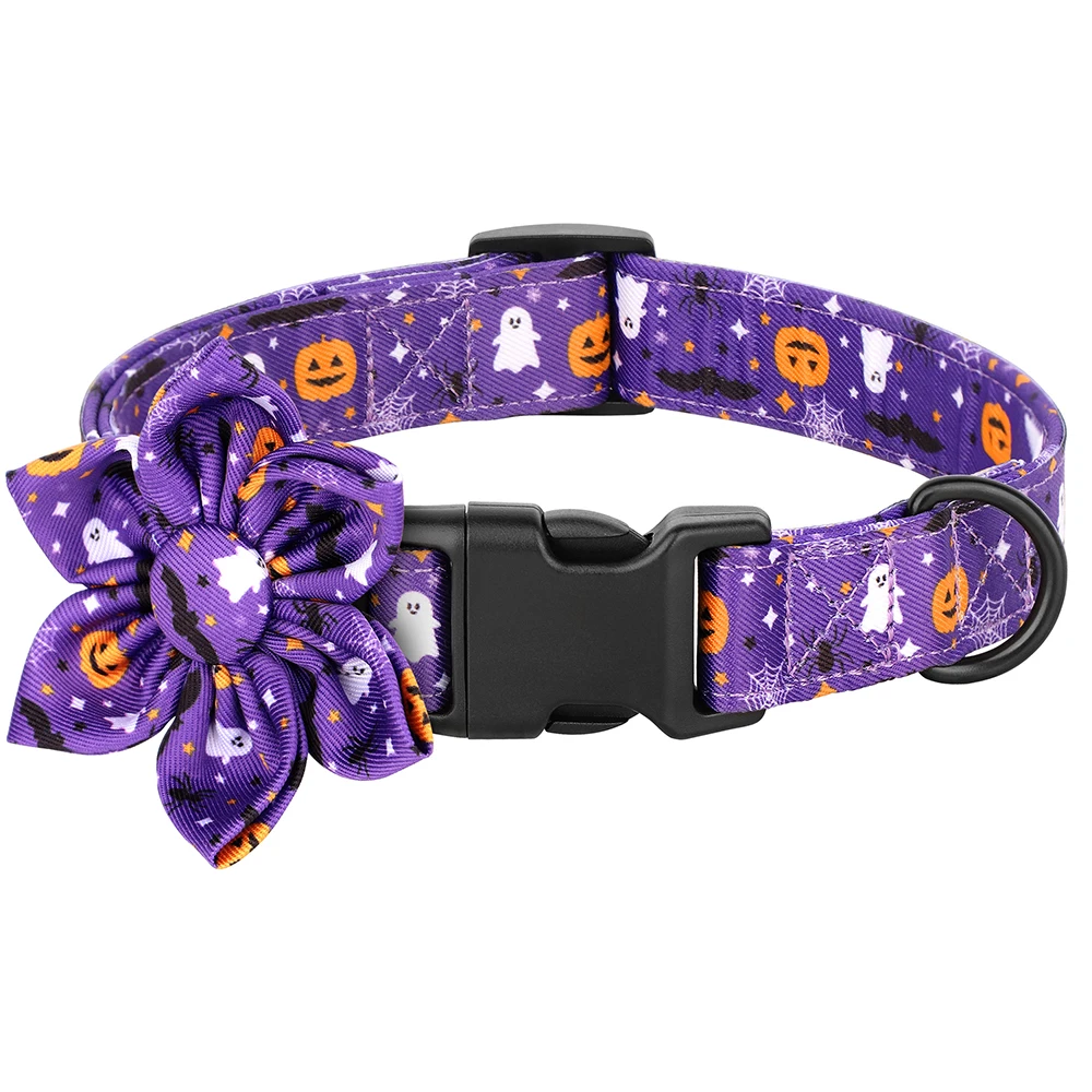 Collar de perro de nailon para Halloween con flores, collares ajustables para mascotas de calabaza para perros pequeños, medianos, Lagre, accesorios para perros