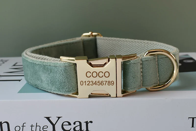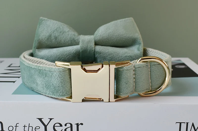 Collar de perro de nailon de lujo con grabado gratis, Correa con pajarita, hebillas de Metal dorado, suministros ajustables para mascotas, accesorios, franela 17