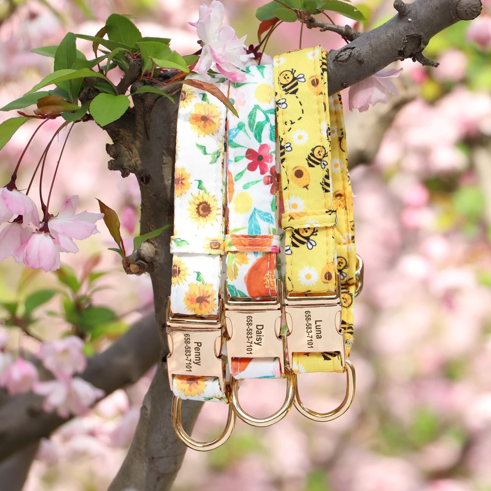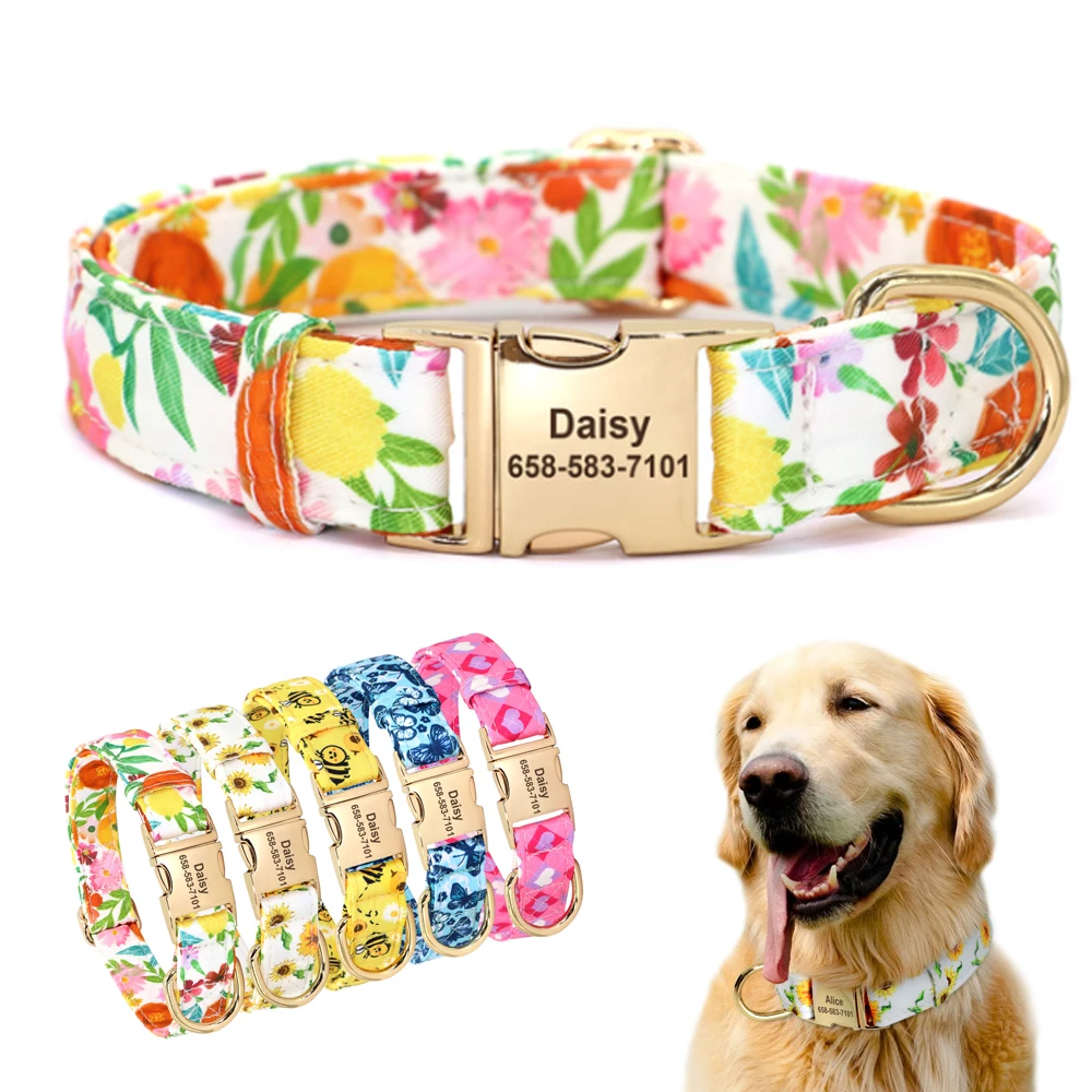 Collar de nailon personalizado para perro, collar con estampado Floral para cachorro, collares con placa de identificación de mascota personalizados gratuitos para perros pequeños y grandes Chihuahua