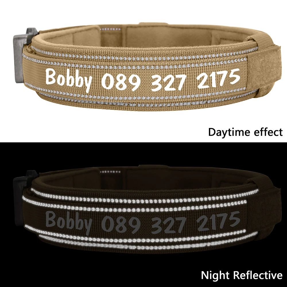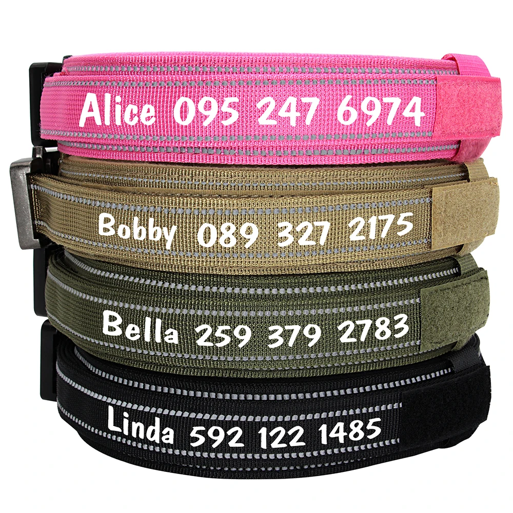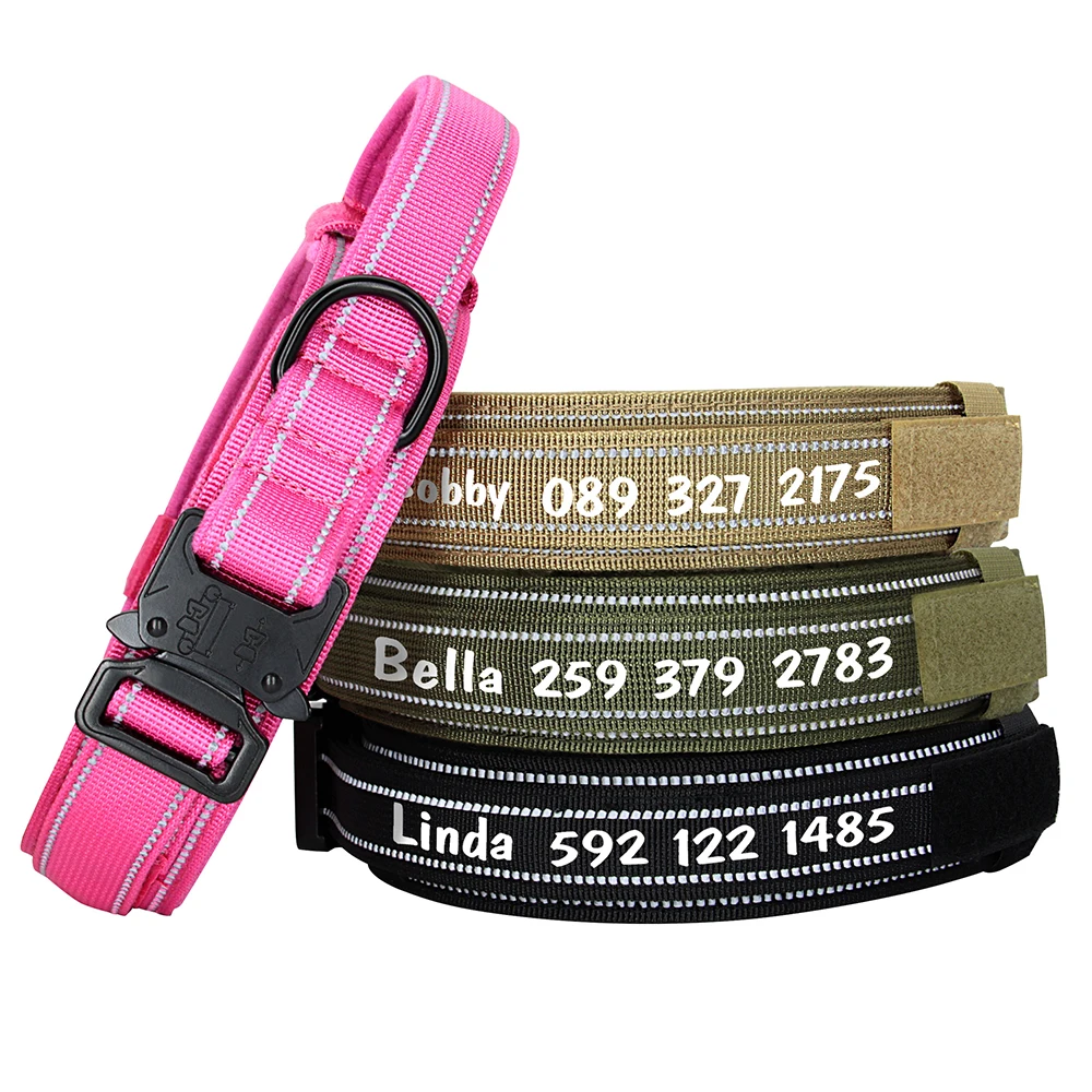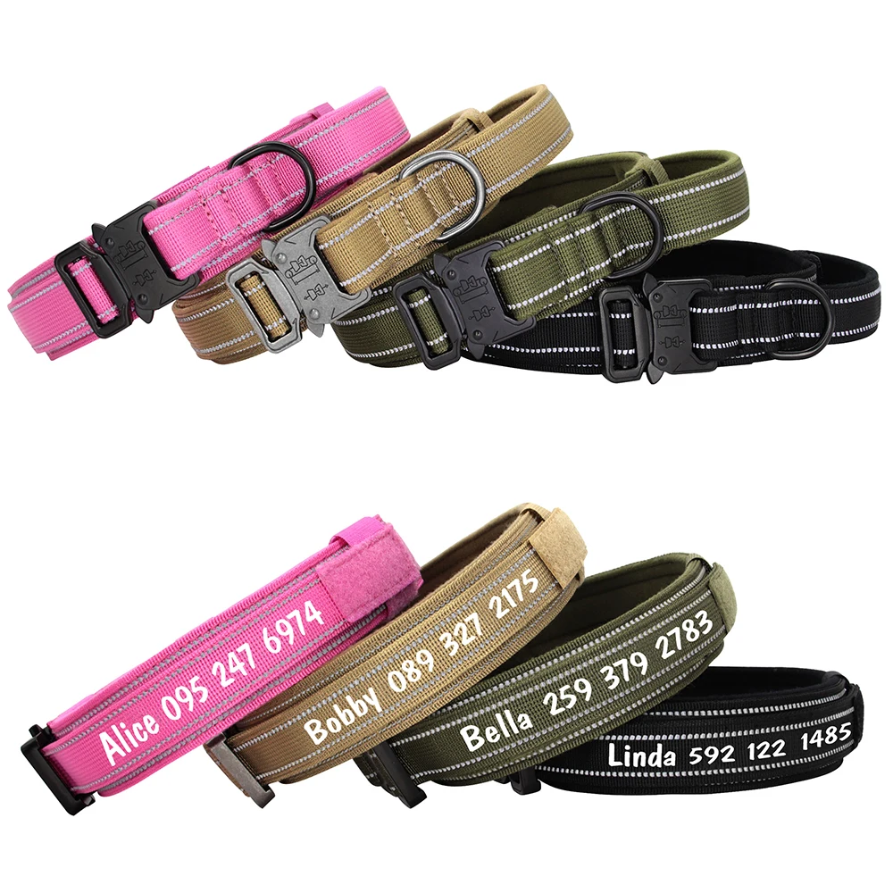 Tipo: Collar de nailon personalizado para perros, Collar táctico militar para perros, collares para perros medianos y grandes, reflectantes y duraderos, suministros para mascotas