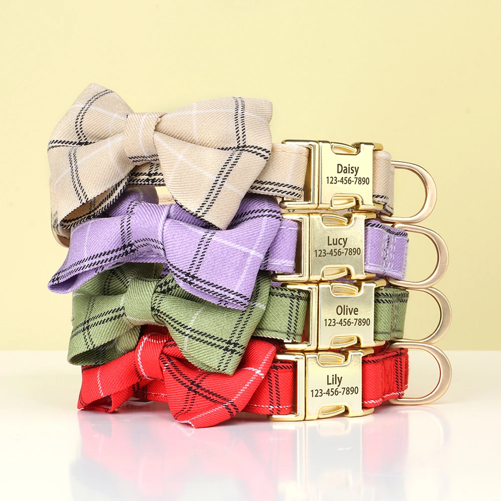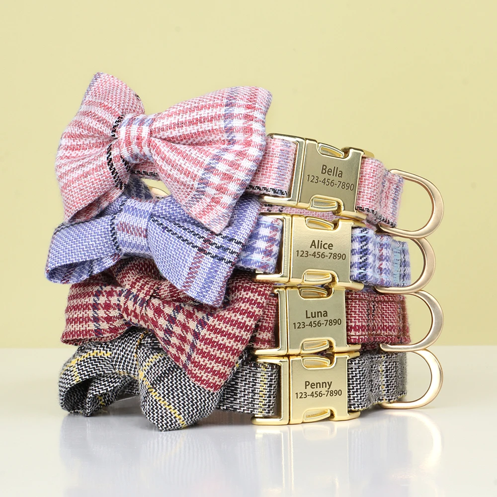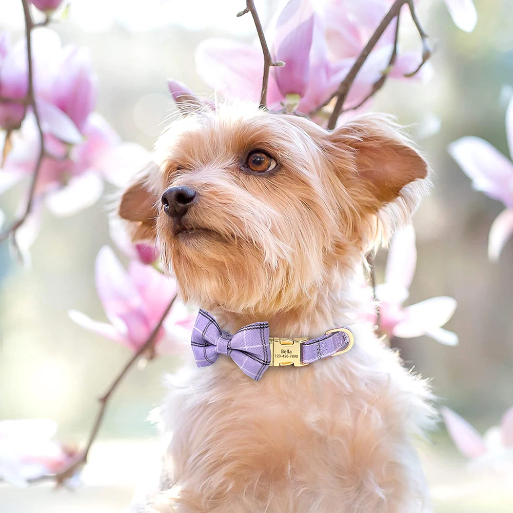 Collar de nailon personalizado para perro, collares bonitos con lazo para cachorro, collar con nombre de identificación de mascota grabado gratis para perros pequeños y medianos, Chihuahua