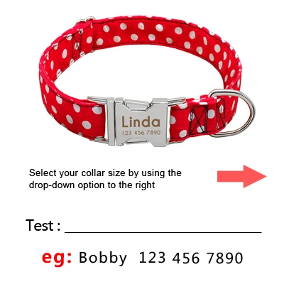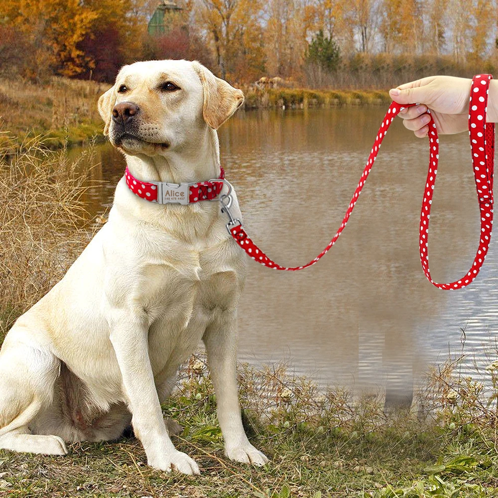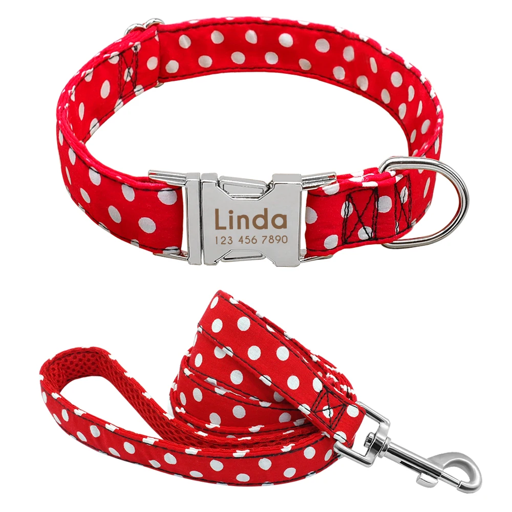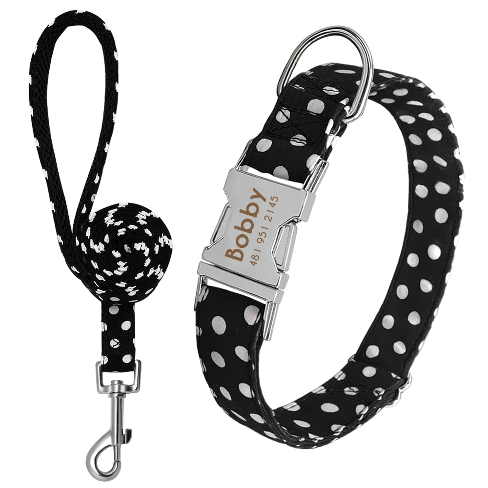 Collar de perro personalizado de nailon para mascotas, collar de lunares, conjunto de correa para caminar, placa de identificación personalizada para cachorros, collares con etiqueta de identificación ajustable grabada