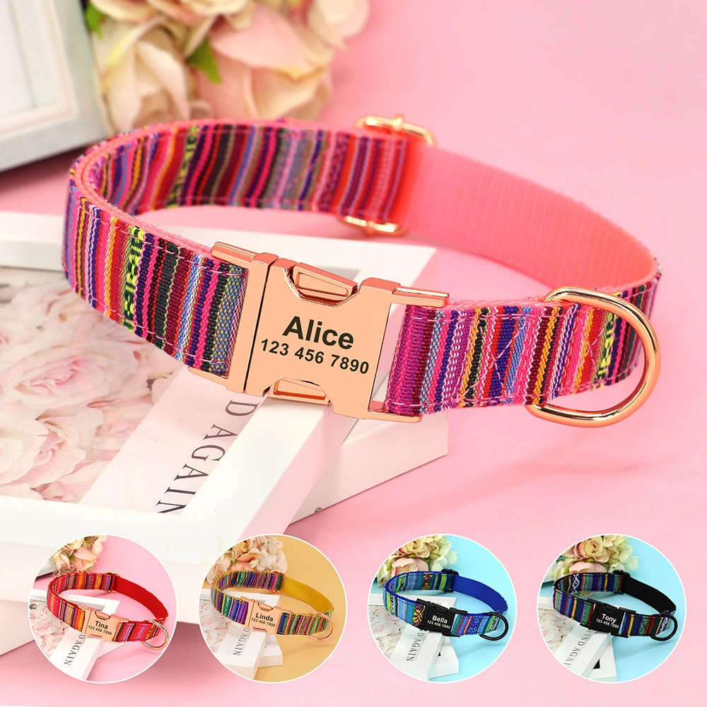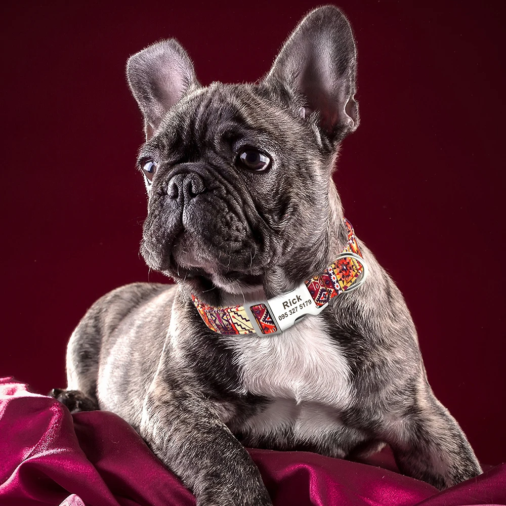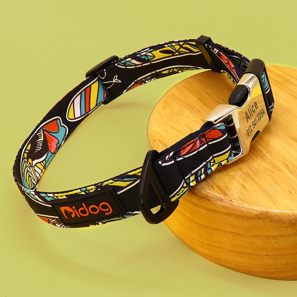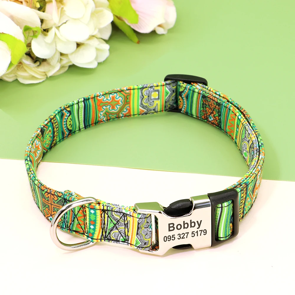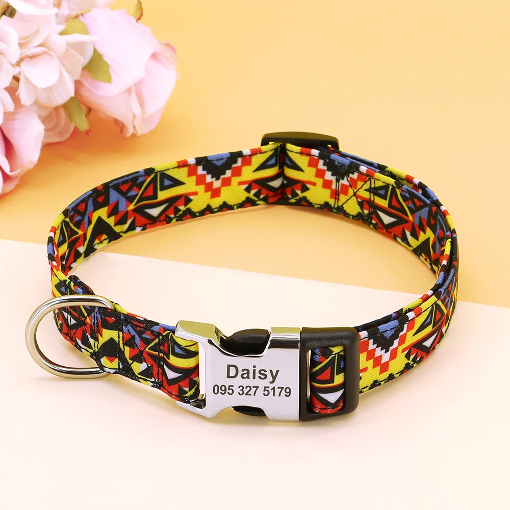 Nombre: Collar personalizado para perros grandes, Collar personalizado con estampado bonito para mascotas, collares de identificación de perros y cachorros de nailon con nombre grabado para perros pequeños, medianos y grandes