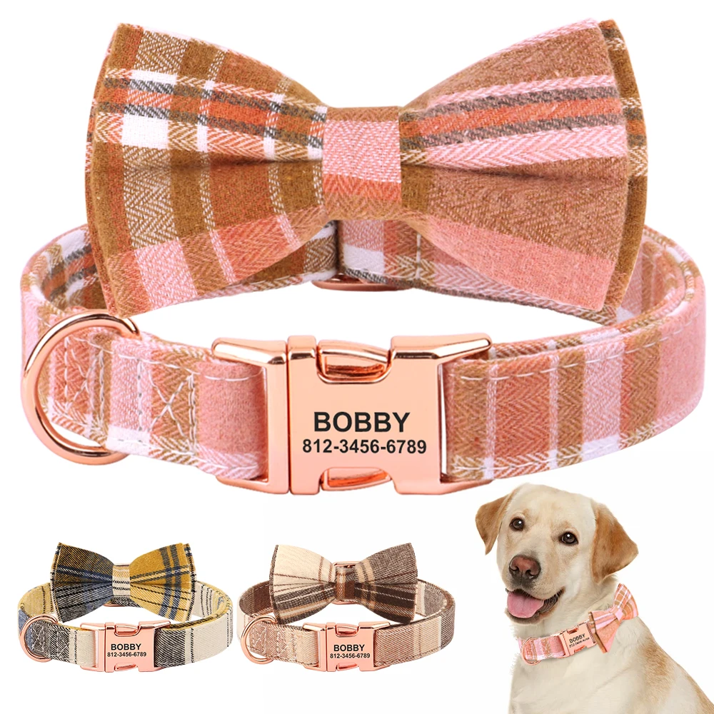 Collar de nailon personalizado para perros, collares a cuadros para perros con lazo, collar con hebilla personalizado para mascotas para perros pequeños y medianos, Pug Chihuahua
