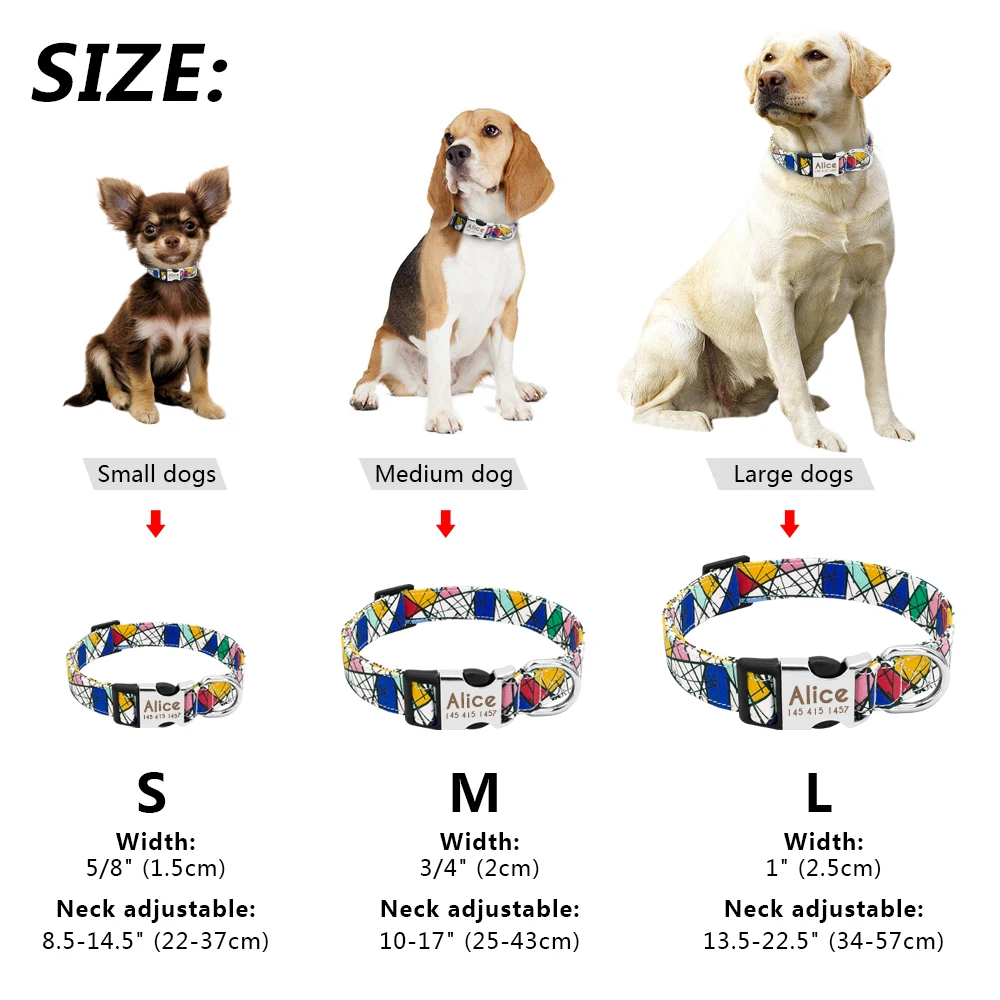 Nombre: Collar de perro pequeño, collares de nailon personalizados para perros pequeños, de cachorro Chihuahua Collar, grabado de identificación de nombre para mascota Pitbull pequeña, mediana y grande