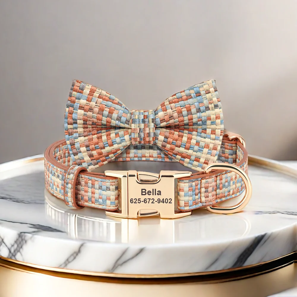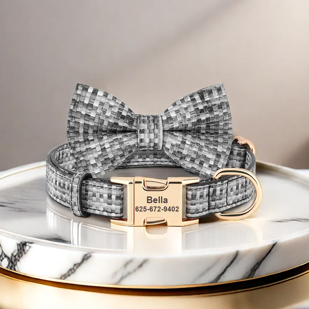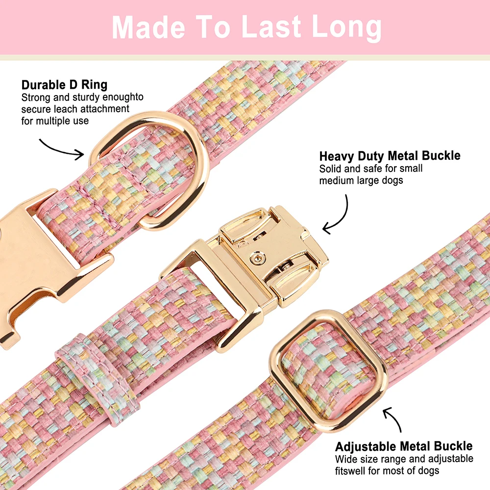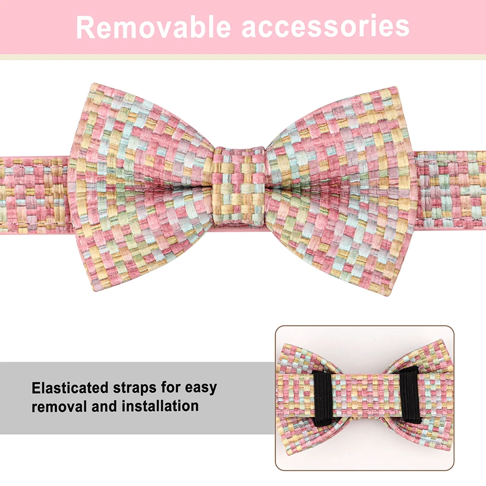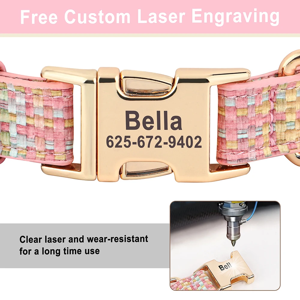 Collar Personalizado para Perros, Collar de Nailon con Pajarita, Grabado Personalizado, Identificación de Nombre de Mascota, Color Rosa, para Perros Pequeños, Medianos y Grandes