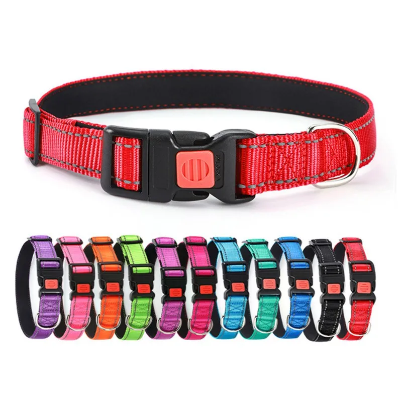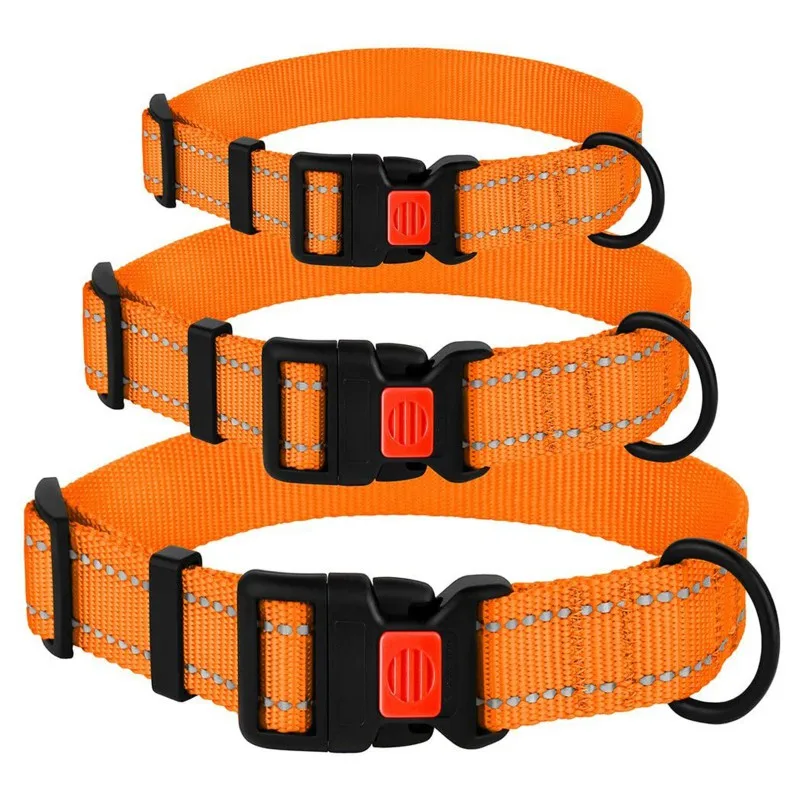 1.Collar reflectante para perros Collar de nailon seguro para perros medianos con hebillas, colores brillantes que no se desvanecen con el tiempo