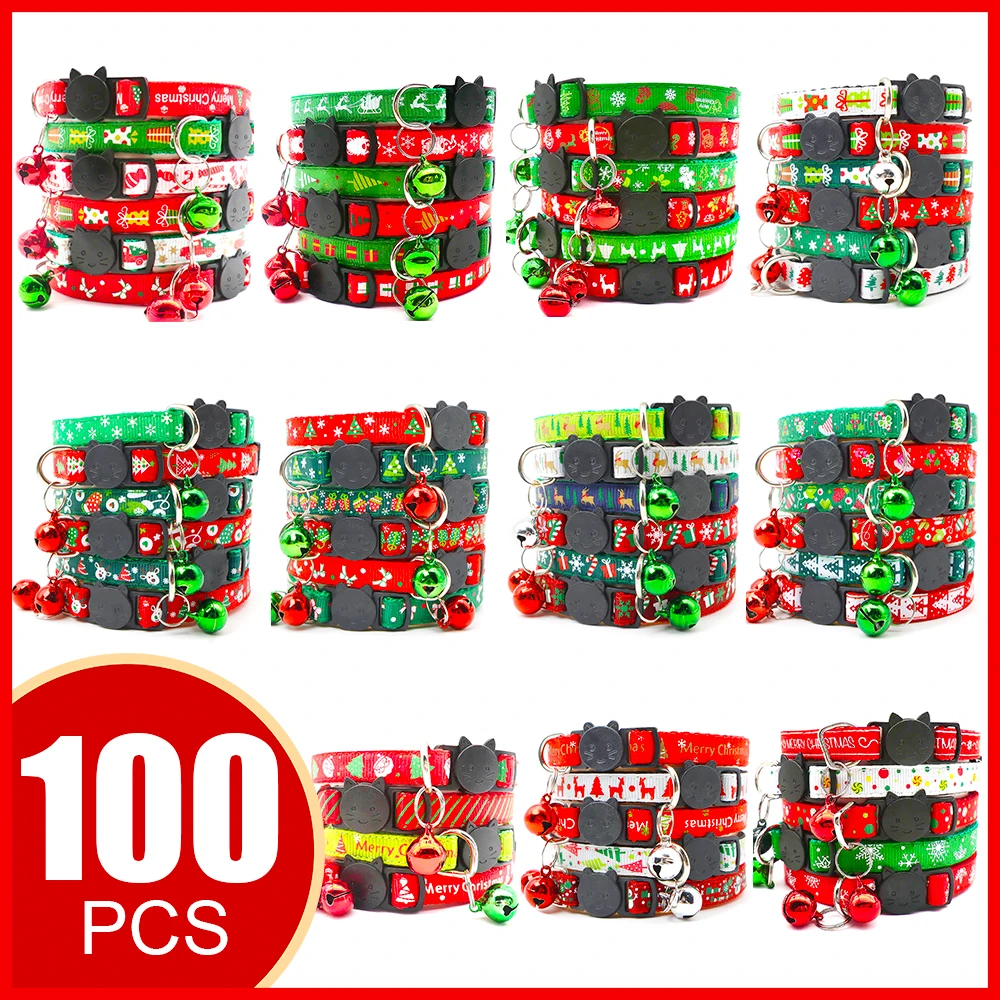 Collar de Navidad para mascotas de 100, con campana, ajustable, de desconexión rápida, Collar personalizado para perro pequeño, accesorios para perros cachorros