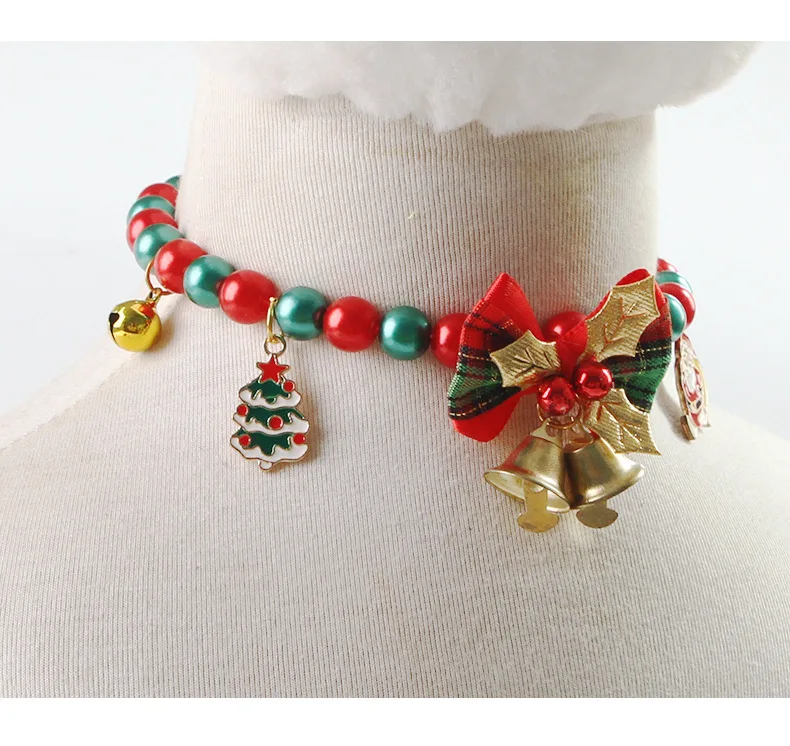 Collar navideño para mascotas, Collar para gatos, perros pequeños, Collar lujoso para perros y gatos con campana con lazo, Collar para gatitos, cachorro, fiesta de Navidad Su