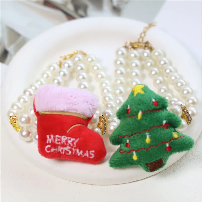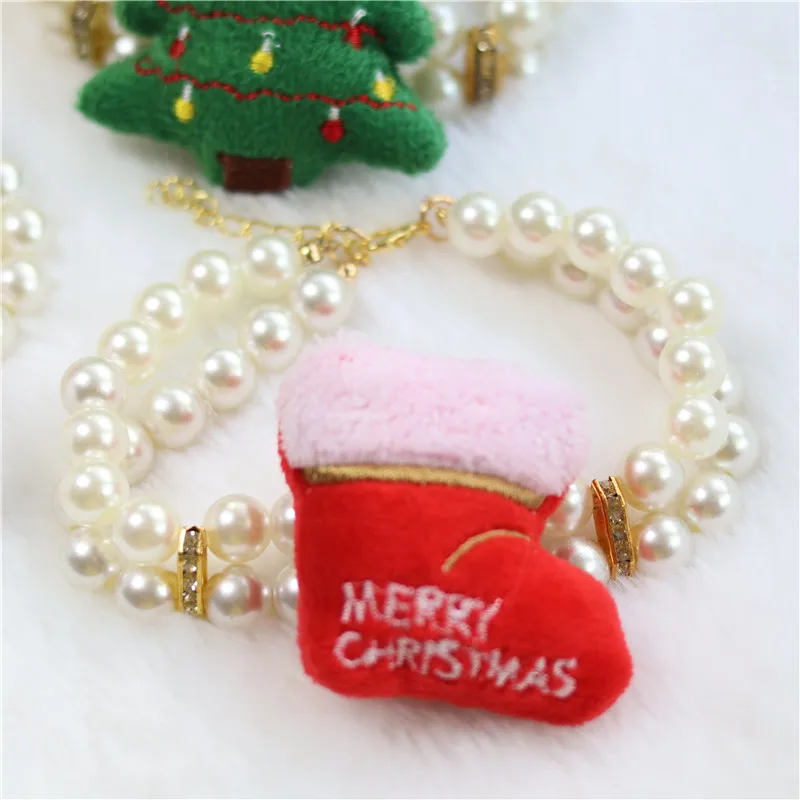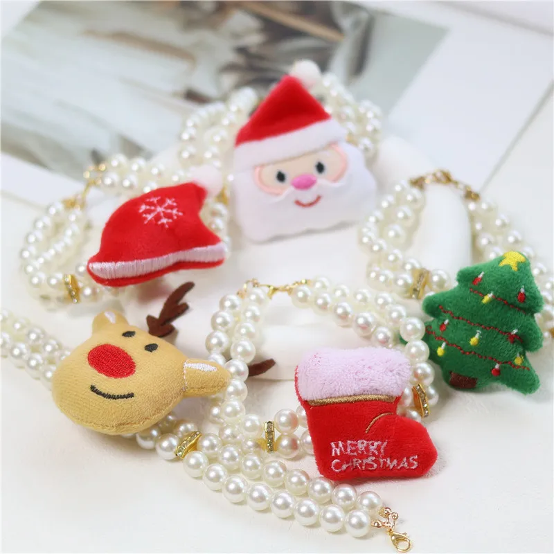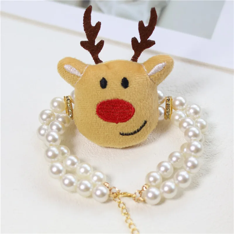 Collar navideño con perlas para perros y mascotas, Collar navideño con ciervos para perros pequeños, medianos y grandes, accesorios para mascotas